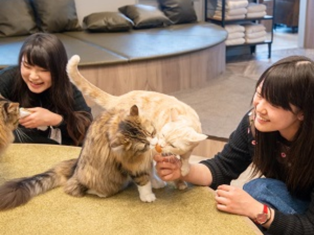 - Spend a leisurely time surrounded by adorable cats and let yourself be soothed.