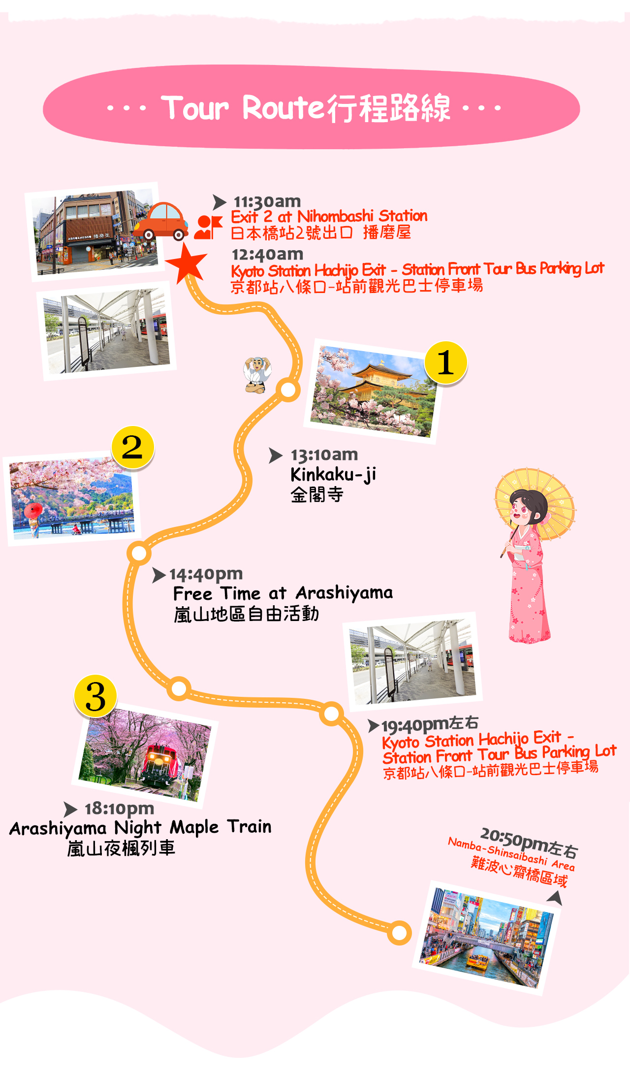 # * 교토의 봄이 분홍색으로 물들 때, 금각사의 금빛, 대나무 숲의 속삭임, 야간 열차를 타고 벚꽃을 쫓는 것까지——이 오사카/교토 출발 한정 당일치기 여행은 봄날의 일본 풍경의 극치인 로맨스를 숨기고 있습니다