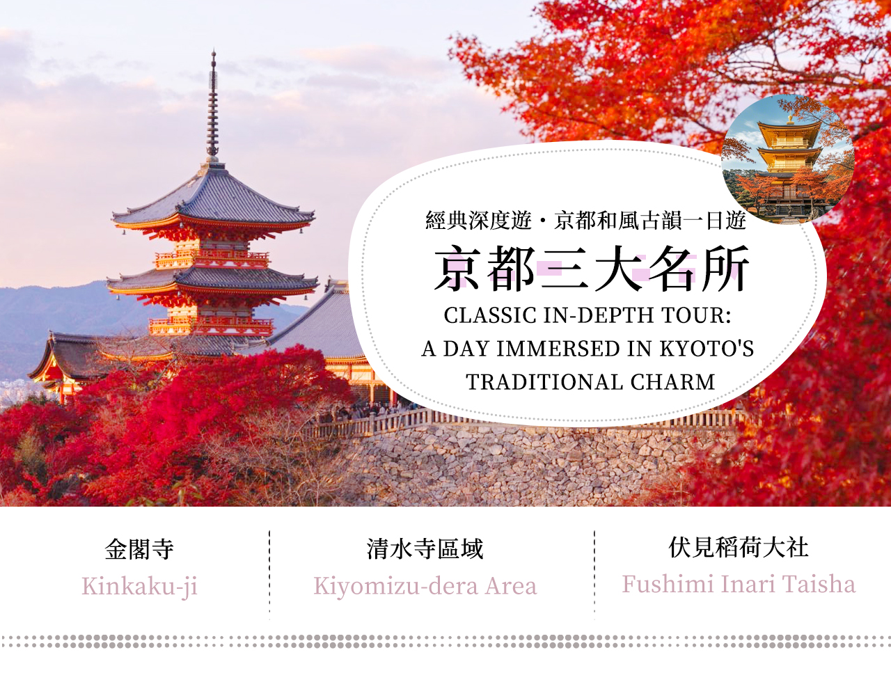 - * 교토 3대 랜드마크에 체크인: 교토의 모든 유명 명소를 한번에 방문하세요