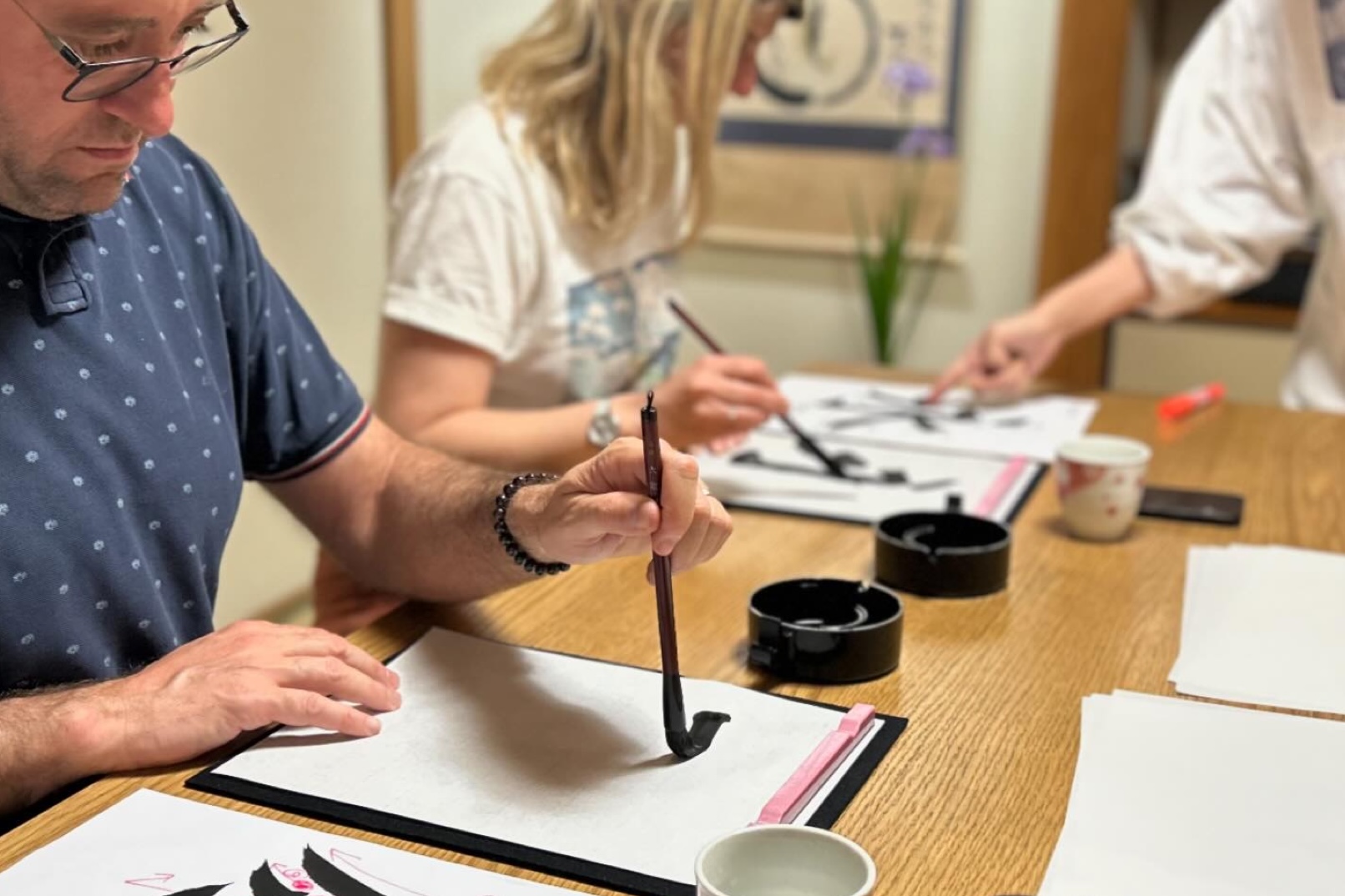 - * Traditional calligraphy uses brushes and ink to express Chinese and kana characters artistically.