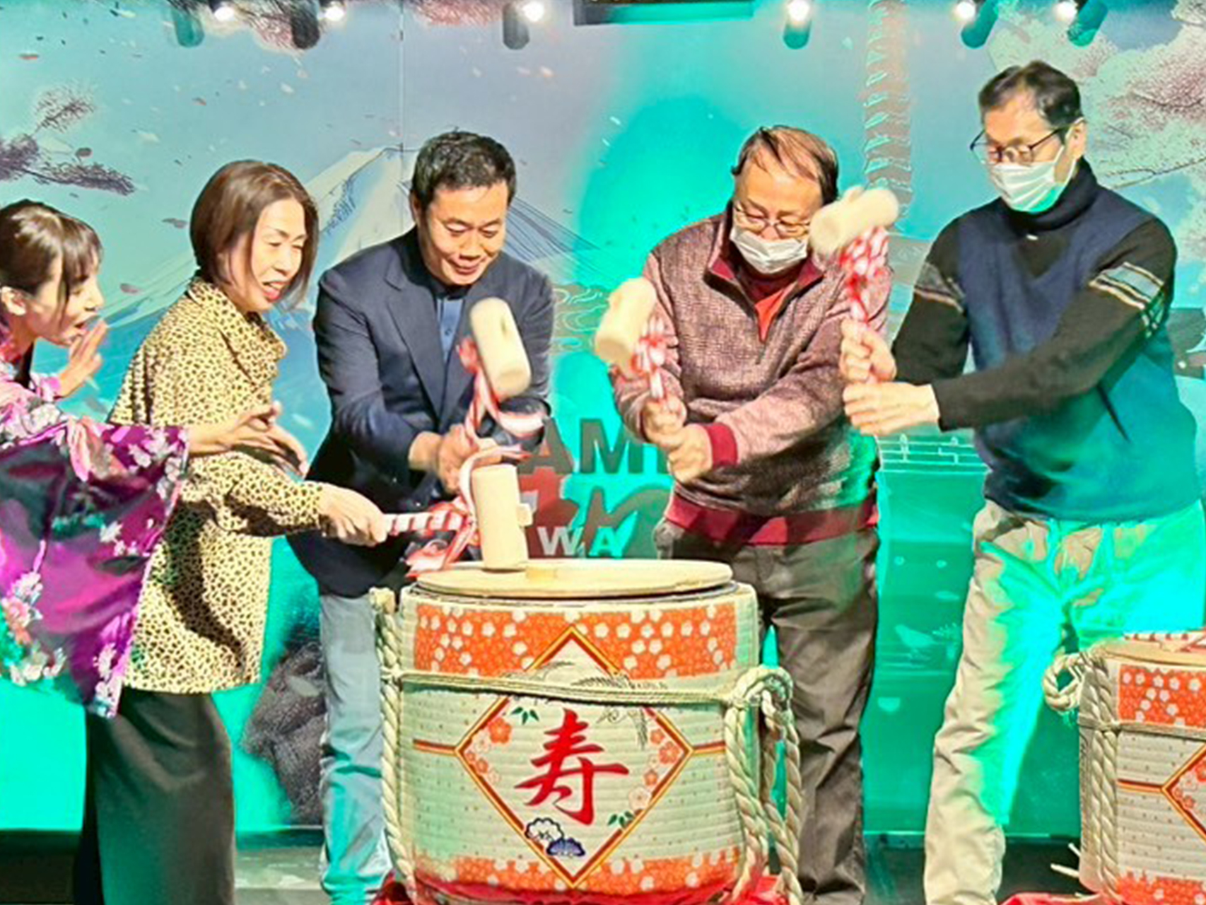 - * 선정된 손님들이 무대에서 사케 통을 여는 것을 돕고, 함께 “칸파이!”를 외칩니다.