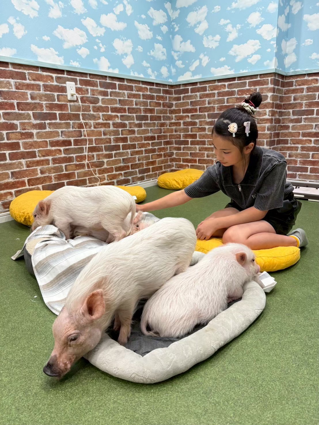 오사카에 위치한 아늑한 마이크로 돼지 카페 부타 고야에서 따뜻한 시간을 보내세요. 깨끗하고 쾌적한 실내 공간에서 친근한 마이크로 돼지들을 만나 교감할 수 있습니다. 세션 시작 전, 저희 직원이 돼지들의 안전과 편안함을 위한 간단한 규칙을 설명해 드립니다. 그 후에는 돼지들을 부드럽게 쓰다듬고, 먹이를 주고, 사랑스러운 사진을 자유롭게 찍을 수 있습니다. 각 돼지는 고유한 성격을 가지고 있으며, 가까이에서 그들의 행동을 관찰하는 것은 특별한 경험이 될 것입니다. 저희 직원은 항상 가까이에서 여러분의 안전하고 즐거운 방문을 돕기 위해 대기하고 있습니다. 혼자 여행하는 분, 커플, 가족, 동물 애호가 모두에게 완벽한 이곳은 오사카에서 가장 독특하고 편안한 경험 중 하나입니다. 가모 욘초메역에서 도보로 단 4분 거리에 편리하게 위치해 있습니다. 다양한 세션 길이 중에서 선택할 수 있습니다.