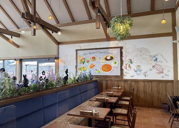 정원은 피터 래빗의 이야기와 전통 영국 요리에서 영감을 받은 메뉴를 제공하는 영국 시골 스타일의 하우스 레스토랑을 자랑한다. 맑은 날에는 해방감 있는 개방감을 주는 테라스 좌석을 강력히 추천한다.