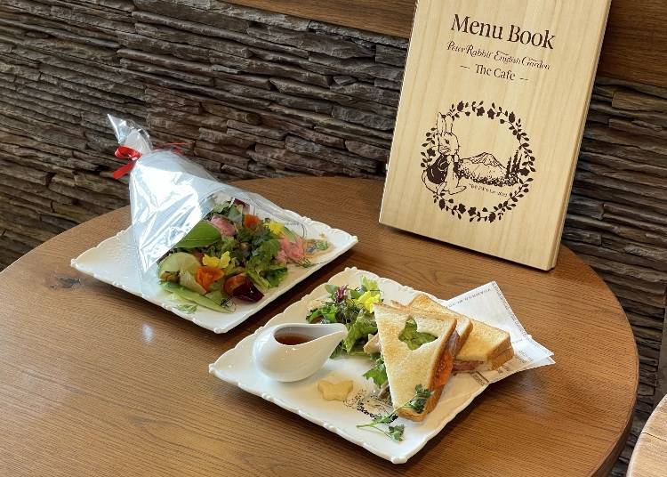 1,800엔의 "제레미 피셔의 나비 샌드위치(샐러드 포함)"와 1,700엔의 "맥그리거 씨의 신선한 야채 부케 샐러드" 같은 피터 래빗의 모험에서 영감을 받은 요리들을 맛보자. 각 요리는 우아함과 매력을 발산한다.
