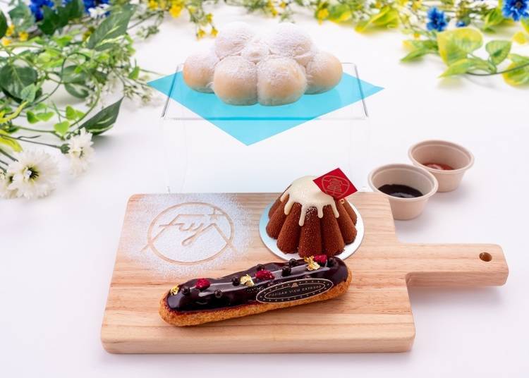 하지만 하이라이트는 이 특별 차량에서만 이용할 수 있는 "스위츠 플랜"인데, 호텔 파티시에가 엄선한 3가지 종류의 과자를 맛볼 수 있다. 라인업에는 "후지야마 뷰 익스프레스 스타일 에클레어", 초콜릿 무스와 피스타치오 크림을 결합한 맛있는 "후지야마 쇼콜라", 크림치즈가 들어간 부드럽고 쫄깃한 "클라우드 브레드"가 포함되어 있으며, 모두 맛있는 만큼 시각적으로도 매력적이다.