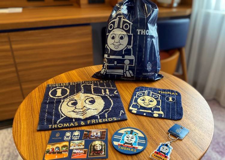 아이들은 여기서만 구할 수 있는 오리지널 토마스 테마 세면용품과 상품들도 좋아할 것이다! 손님들은 무작위로 구성된 오리지널 상품이 가득한 장식 선물 가방을 받는다. 토트백, 끈 파우치, 손수건이 받을 수 있는 선물 중 일부다. 가방 안에 무엇이 들어있을까? 열어서 확인해보자!