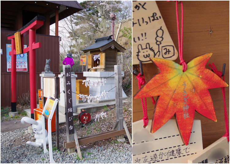 다누키 차야 옆에는 일본 민담 가치가치산의 토끼에게 헌정된 신사인 우사기 신사(토끼 신사)가 있다.