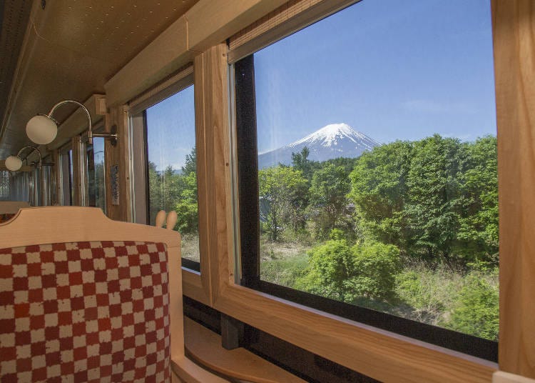 후지산 뷰 익스프레스는 후지큐코선을 따라 오쓰키역과 가와구치코역 사이를 운행하는 독특한 경치 좋은 기차다. 기차는 창문에서 후지산의 아름다운 전망을 특징으로 한다!
