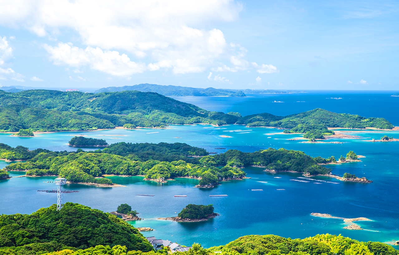 - * 구주쿠시마 진주 해양 관광 지역에서 일본 서규슈의 가장 아름다운 군도 해경 감상