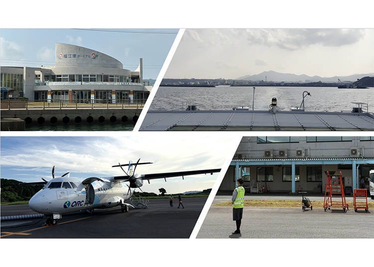 고토시로 가는 방법은 다양하지만 그 중에서도 비행기가 가장 빠르고 편리합니다. 규슈 지방 최대 도시인 후쿠오카시의 후쿠오카 공항에서 비행기로 40분, 나가사키 공항에서는 30분이면 고토 후쿠에 공항에 도착할 수 있습니다. 비행기편도 오전과 오후에 여러 편이 있어서 여정에 맞춰 편리하게 이용할 수 있다는 점도 매력적입니다. 비행기로 이동하는 동안 하늘에서 내려다보는 152개의 크고 작은 섬으로 이루어진 고토 열도와 아름다운 바다는 그 자체로도 멋진 경험입니다. 또 섬을 방문하는 여행이기에 배를 타고 고토시로 가는 방법도 추천합니다. 나가사키항에서 고속선(제트포일)을 이용하면 고토시의 후쿠에항까지 약 85분이면 도착합니다. 배편 역시 이른 아침부터 저녁까지 여러 편이 있어서, 나가사키 시내를 관광하기에도 편리합니다. 고토시로 갈 때는 비행기, 돌아올 때는 배를 이용하는 식으로 계획해 보시는 것도 좋을 것입니다. 섬에는 전철이 없어서 자동차나 버스가 주요 이동 수단입니다. 운전이 가능하신 분께는 렌터카를 추천합니다. 렌터카는 공항이나 항구, 호텔 등에서 예약할 수 있습니다. 다만 여름 휴가철이나 이벤트가 있는 시기에는 이용자가 많아 빌리지 못하는 경우도 있으므로 사전에 예약해 두면 안심하고 이용할 수 있습니다. 공항이나 관광 시설에서는 캐시리스 결제가 가능하지만 현지 음식점이나 가게 등에서는 아직 현금 결제만 가능한 곳이 많으므로, 현금을 꼭 준비해 두세요.