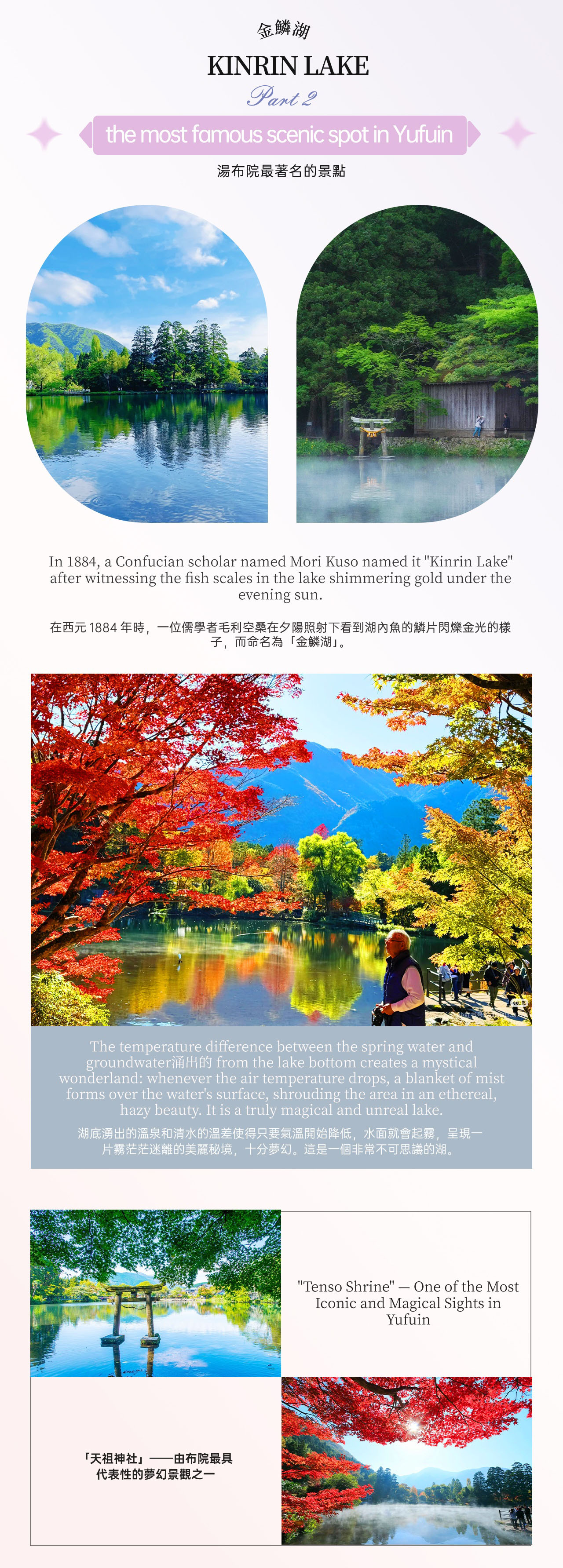 - * 신비로운 안개와 몽환적인 도리이가 어우러진 킨린코 호수의 아름다운 풍경을 감상해보세요.