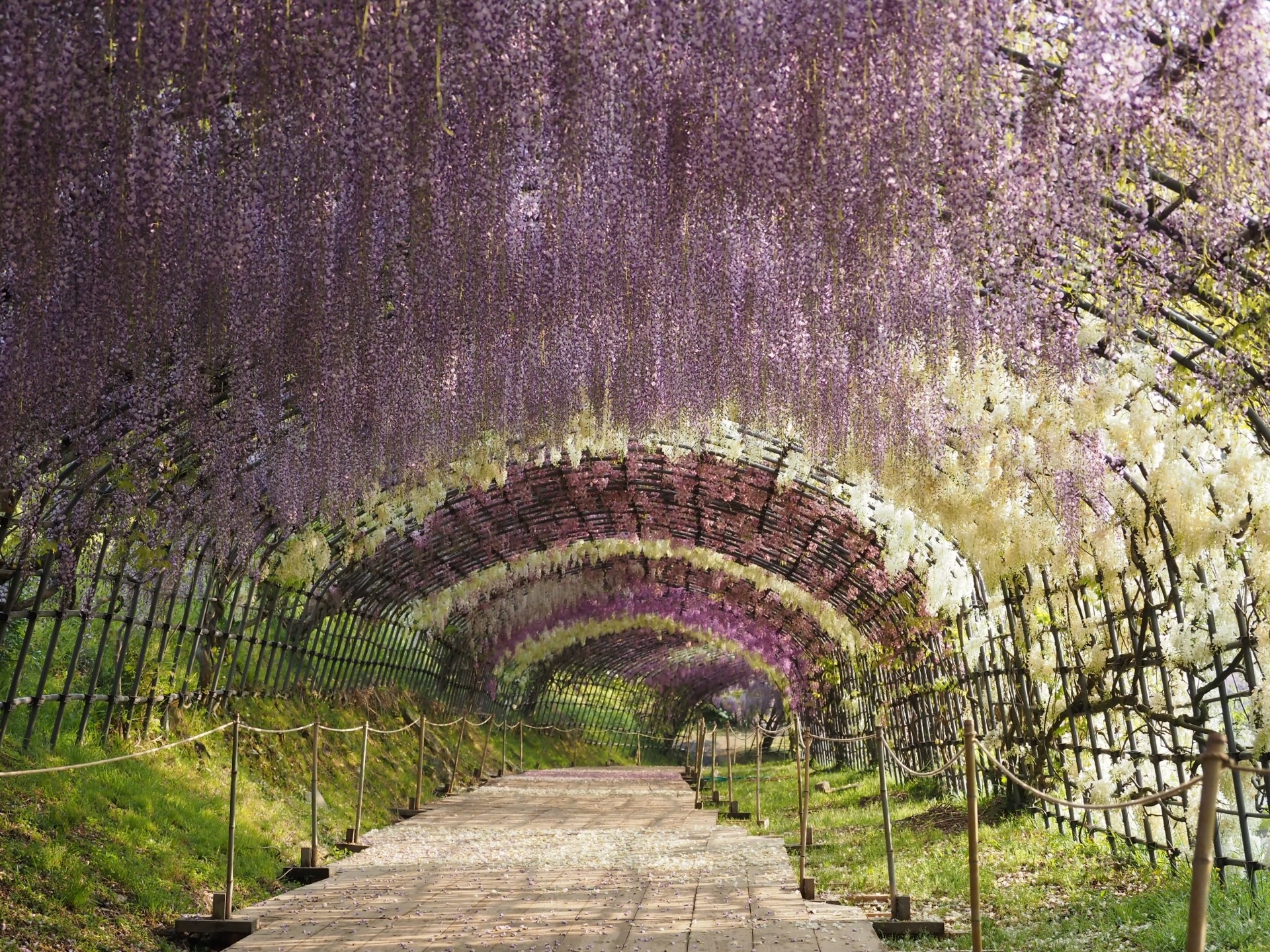 후쿠오카-기타큐슈 벚꽃 구경 당일치기 여행 | 시즌 한정 투어: 가와치 등나무 정원 & 등나무 터널, 고쿠라 성 정원, 우미노노나카미치 해변 공원, 미야지다케 신사 빛의 길, 기타큐슈 아울렛 (하카타 출발)