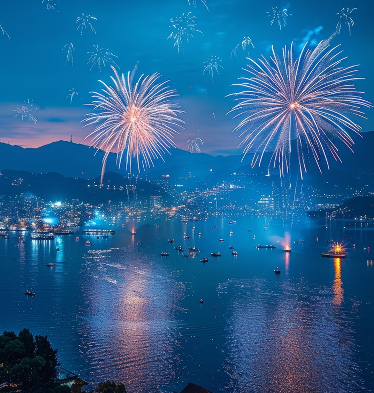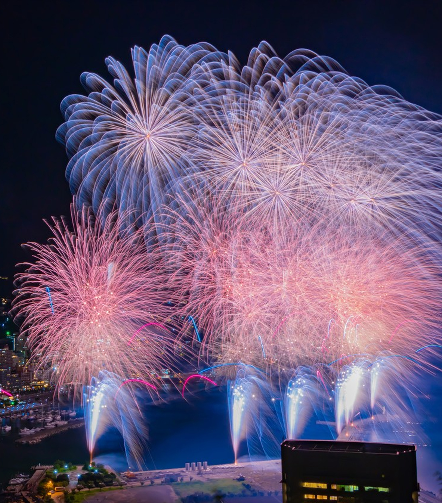 - 일본은 연중 개최되는 해상 불꽃 축제는 독특한 '해상 불꽃 폭포' 피날레 공연과 훌륭한 음향 효과로 유명하며, 일본 불꽃의 낭만을 경험할 수 있는 최고의 선택입니다.