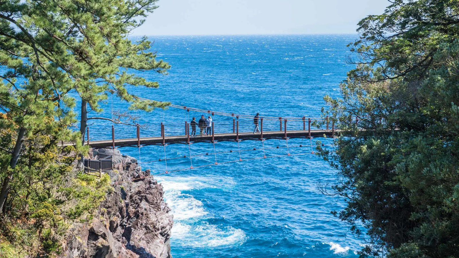 - * 이즈의 자연 절경: 조가사키 해안의 하늘과 바다가 맞닿은 풍경, 가도와키 현수교의 협곡 숲, 말차 푸딩 같은 오무로산