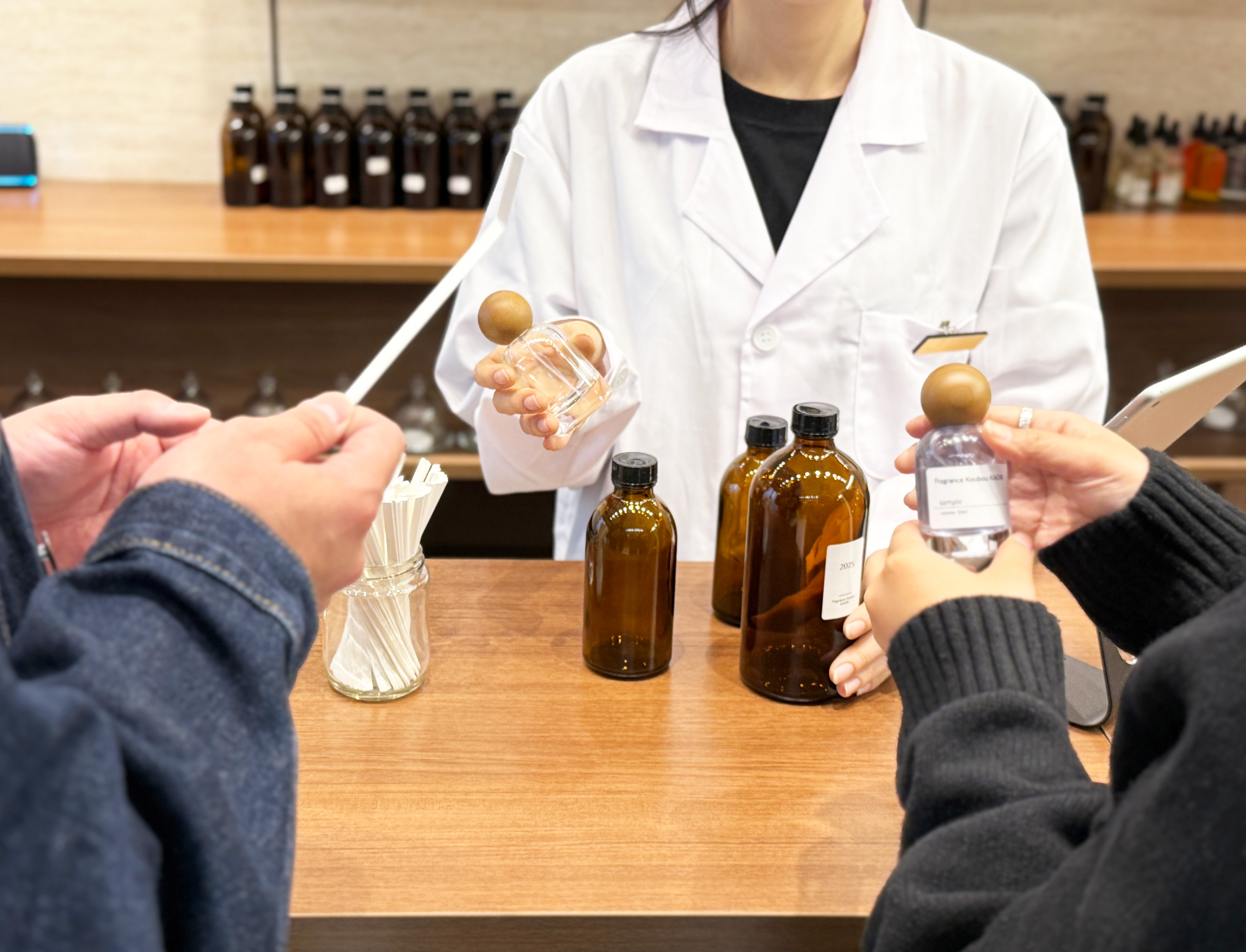 도쿄 아사쿠사에 위치한 ‘후레구란스 공방 향’은 직접 향수를 조제할 수 있는 맞춤형 향기 체험 매장입니다. 40여 종의 향료 중에서 3~5종류를 골라 현장에서 자신만의 향기를 조향하고 이름을 붙일 수 있습니다. 여기에서는 의식적인 체험을 제공하여 커플 데이트, 선물 기념 또는 혼자 체험하든 독특한 추억을 남길 수 있습니다.