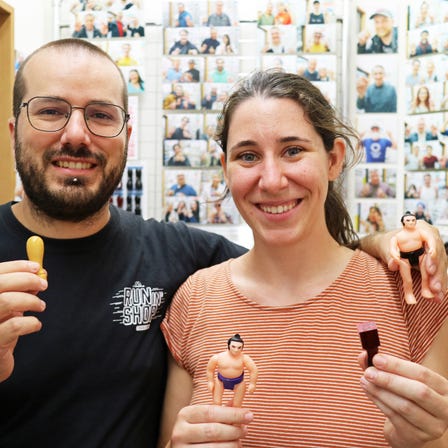 세 가지 색상의 도장을 겹겹이 쌓아서 찍으면 닌자, 사무라이, 기모노를 입은 여성 등 전형적인 일본 인물들의 이미지가 나타납니다.
