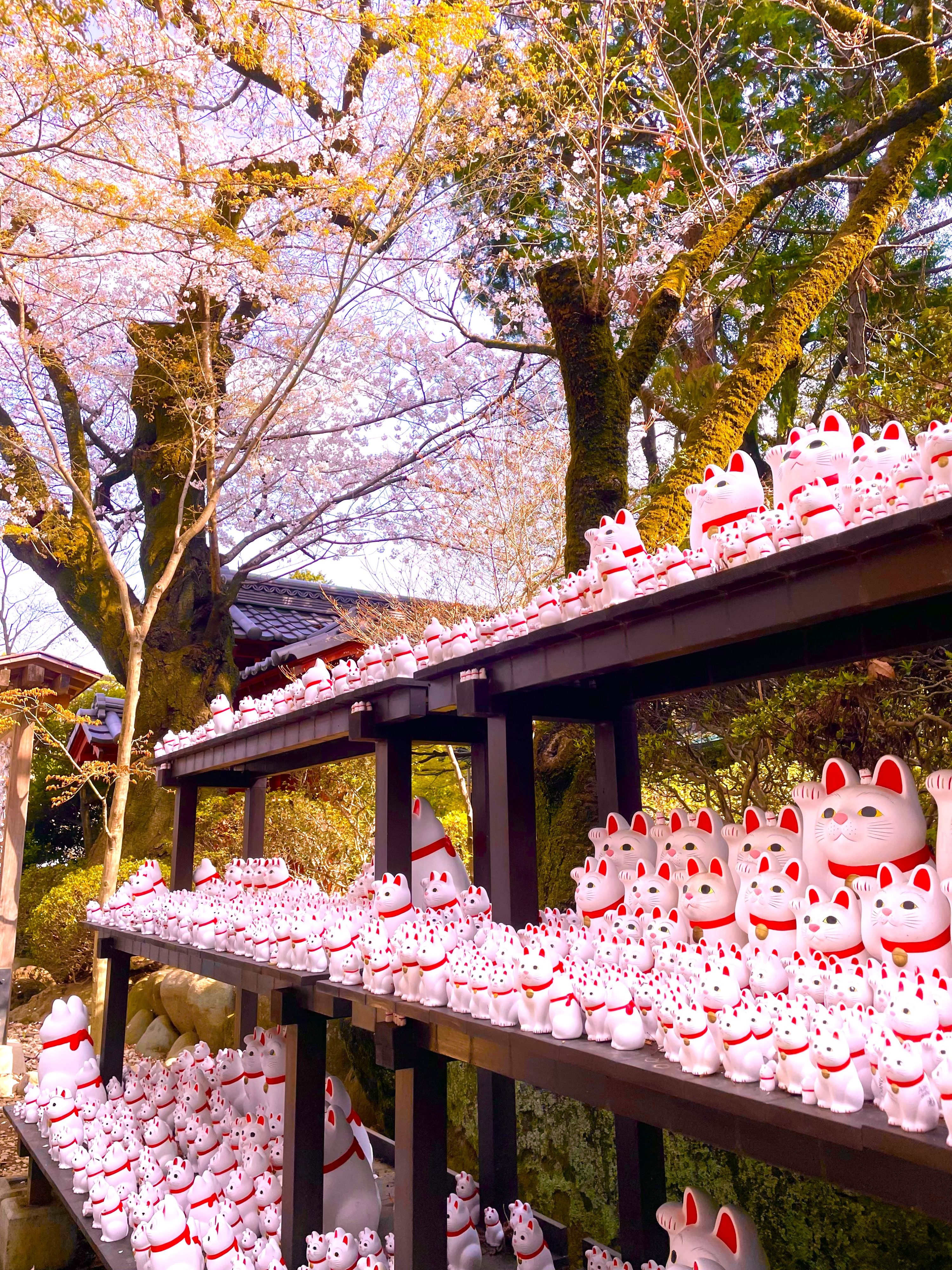 - * 수천 마리의 마네키네코와 벚꽃이 만개한 "마네키네코 사원"을 즐겨보세요.