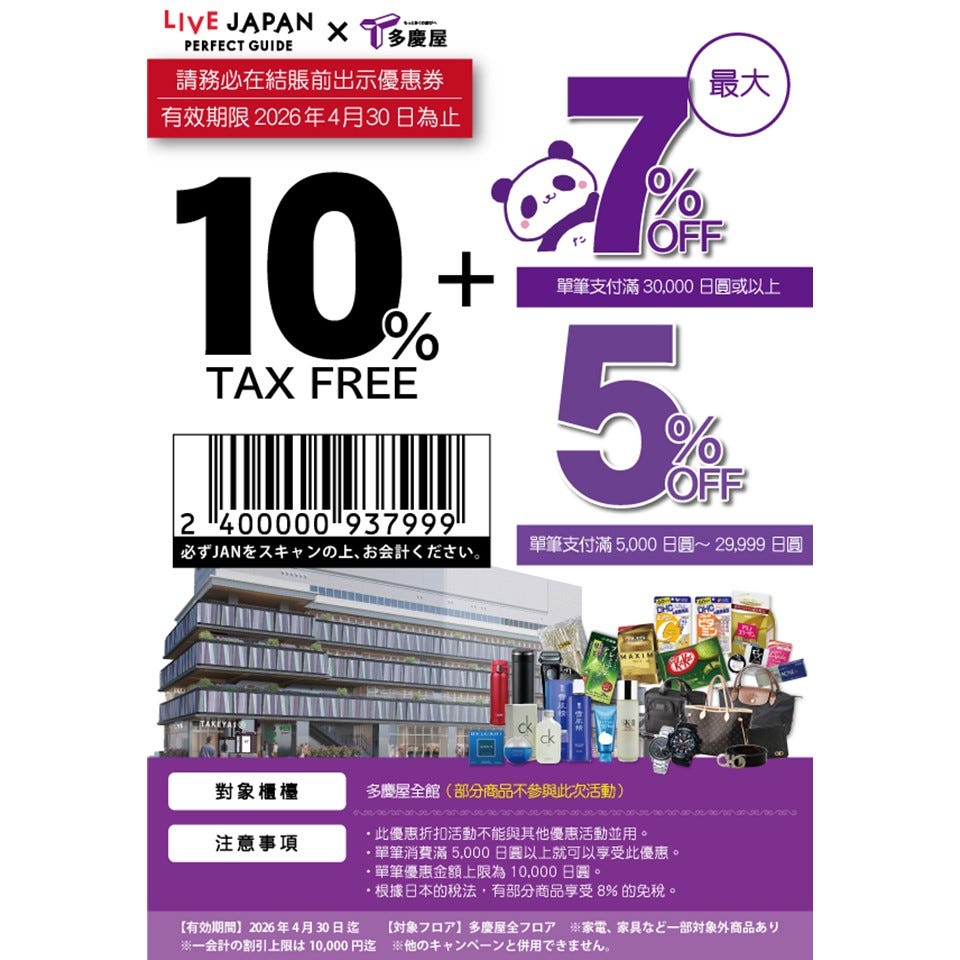 ・單筆消費滿5,000日圓以上就可以享受此優惠。