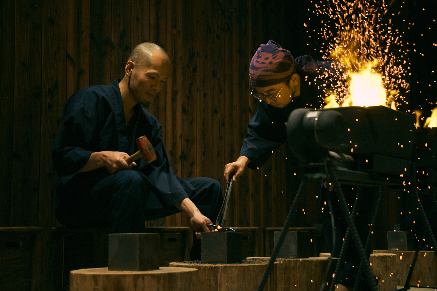 - 在技艺精湛的工匠指导下,加热、锤打并塑造炽热的钢铁。