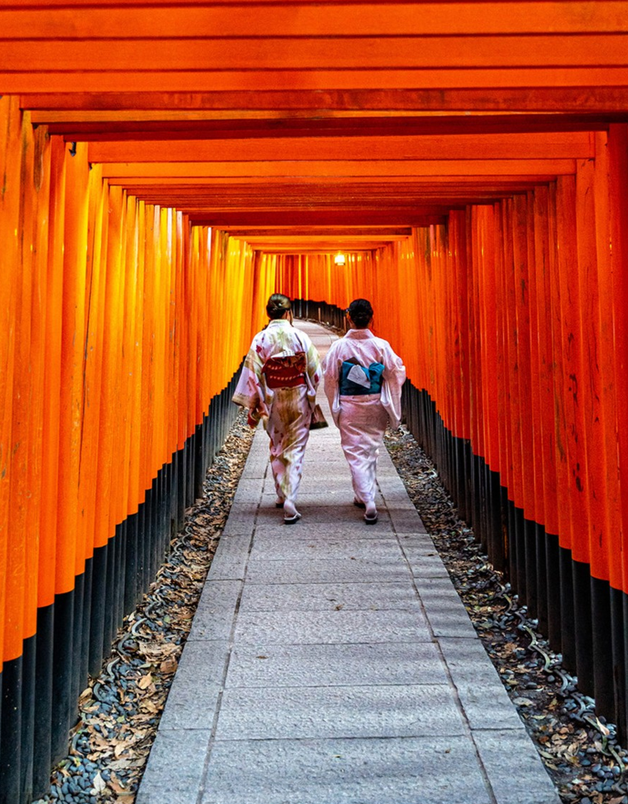 - 漫步于打卡INS上火爆的红色「千本鸟居、连绵不绝的鸟居长廊,感受神秘氛围,