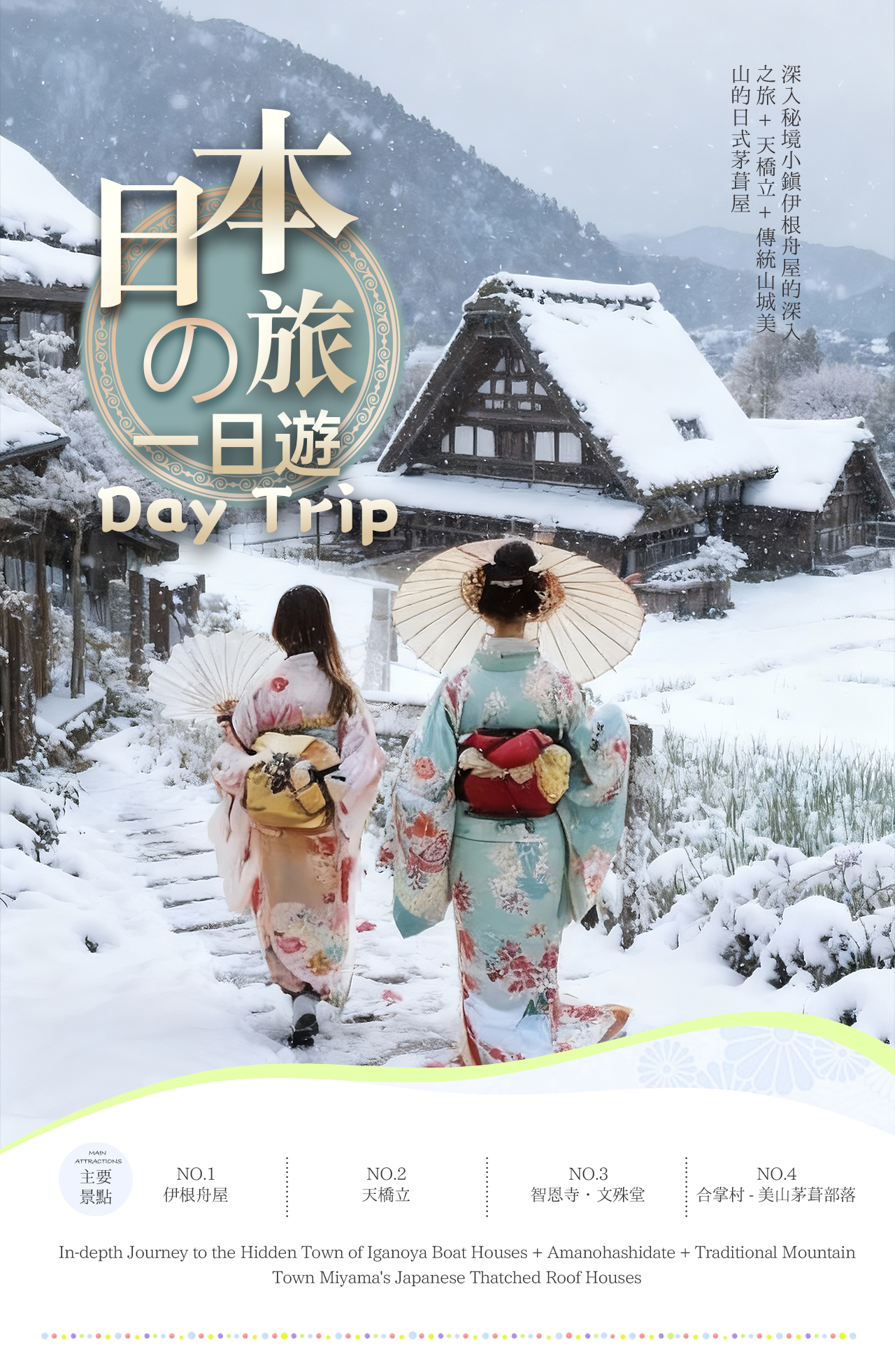 [京都] 【京都秘境合掌村】美山合掌村+日本三景天桥立 +伊根舟屋渔港风情 (大阪出发)亲子推荐 可体验缆车游船