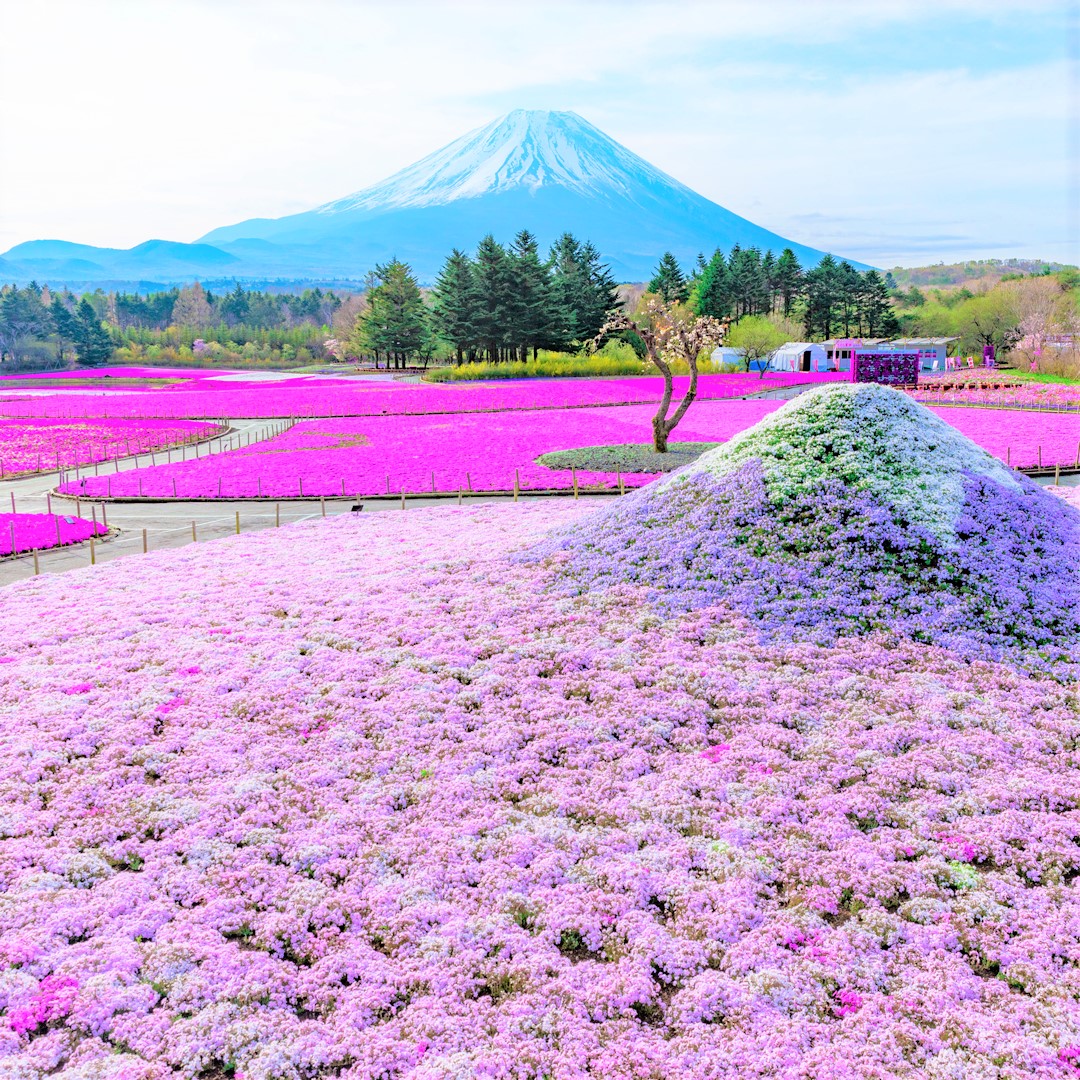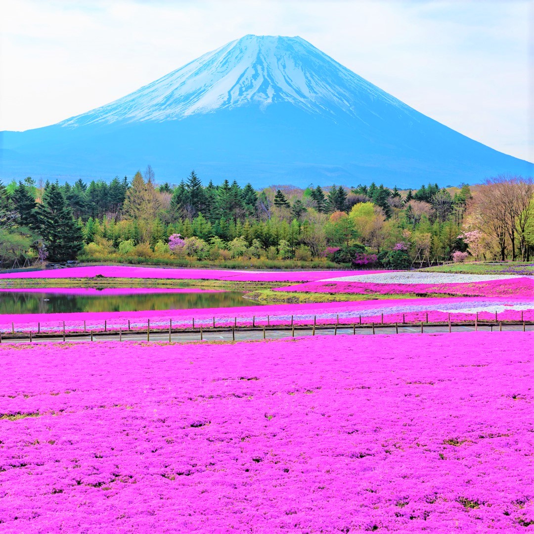 * 本栖湖芝樱季 「本栖湖芝樱祭」(富士芝桜まつり)是富士五湖地区春季最具代表性的花卉盛事之一,每年春季期间限定开放。园区内种植了超过 80万株的芝樱,花色包含粉红、紫红、白等多种色系,满开时仿佛铺上一层色彩缤纷的花毯。 可以在充满花香的户外步道散步、拍摄以 富士山为背景的芝樱花海,还能享受园区内的季节美食与特色伴手礼,感受只有春季才有的绝美景致。 * 山中湖 山中湖位于富士五湖中面积最大、海拔最高,是全年欣赏富士山风景的重要地点之一。湖畔步道平坦舒适,非常适合轻松散步、拍照及亲近自然。春季来到湖边,空气清新、湖面倒映着山色与云影,搭配远方的富士山景色,让人感受到宁静又疗愈的湖畔氛围。 * 忍野八海 忍野八海位于山梨县,是由富士山融雪经地底过滤多年后涌出而形成的八个清澈涌泉池,被列为 日本天然纪念物,也是「名水百选」之一。涌泉池清澈见底、池水湛蓝,被旅客称作「日本的仙境水镜」。