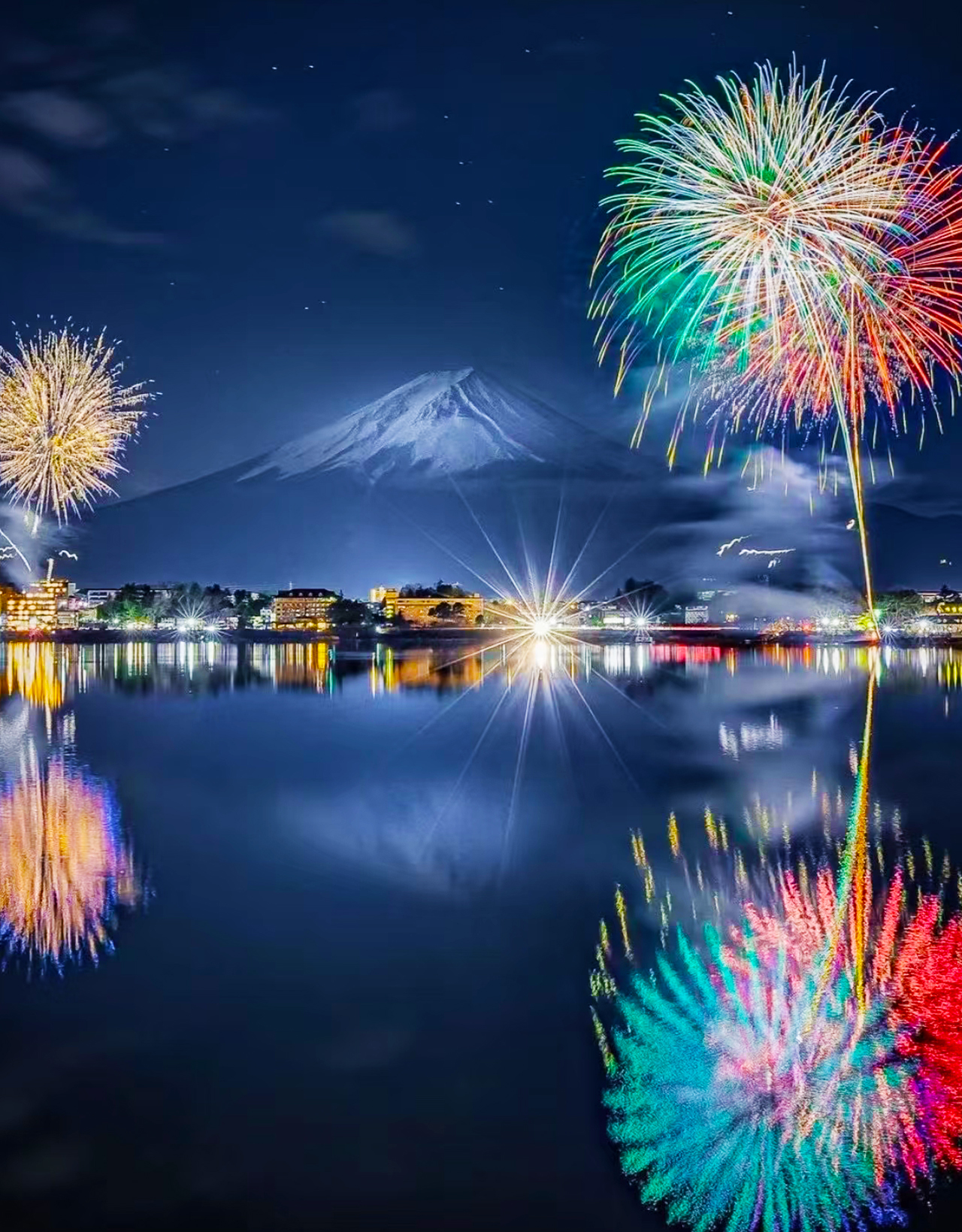 【河口湖大池公园花火大会】 位于富士山山脚的山梨县河口湖都会举行冬花火大会,花火大会以自雪皚皚的富士山作为背景,欣赏着绚丽的冬季烟花。与其他花火大会所不同的是河口湖冬花火除了可以抬头欣赏冠雪的富士山前绽放的烟花,你更可透过清澈如镜的河口湖湖面,低头欣赏绚烂的烟火! 大池公园是这个冬季烟花大会的主要会场,也是最受游客欢迎的观赏点之一。在这里,您不仅能够欣赏到令人屏息的烟花秀,还能够在烟花绽放的同时欣赏到富士山的壮观雪景。这个绝佳的位置让您能够在浪漫的氛围中度过一个难忘的夜晚。 【山中湖】 山中湖是日本富士山脚下的一颗璀璨明珠,是富士五湖中面积最大、海拔最高的湖泊,也是离富士山最近的湖,能拍到最壮观的富士山倒影。 【新仓山浅间公园】 位于日本山梨县富士吉田市的一个著名公园,以其绝佳的富士山观景位置和四季各异的美景而闻名。公园内最著名的景点是五重塔,它与富士山的壮丽景色相映成趣,是摄影爱好者的必去之地。 【天梯小镇.日川时计店】 日川时计店位于山梨县富士吉田市,是富士山下著名的打卡地,以其独特的日式街景和与富士山同框的美景而闻名。 【罗森便利店】 富士山下的网红罗森便利店,自带构图,火遍半边天的手机日壁纸,轻松get日系慵懒风大片 【忍野八海】 忍野八海(おしのはっかい),坐落于海拔约940米的忍野村,因拥有八座由富士山融雪汇聚而成的天然泉池而得名,被称为“富士山脚下的蓝色奇迹”。