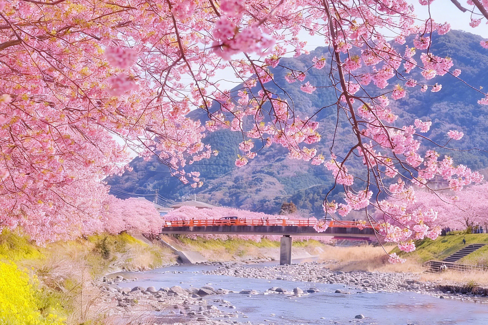 【樱花限定】河津樱樱花祭+草莓采摘+修善寺温泉一日游 (东京新宿往返)
