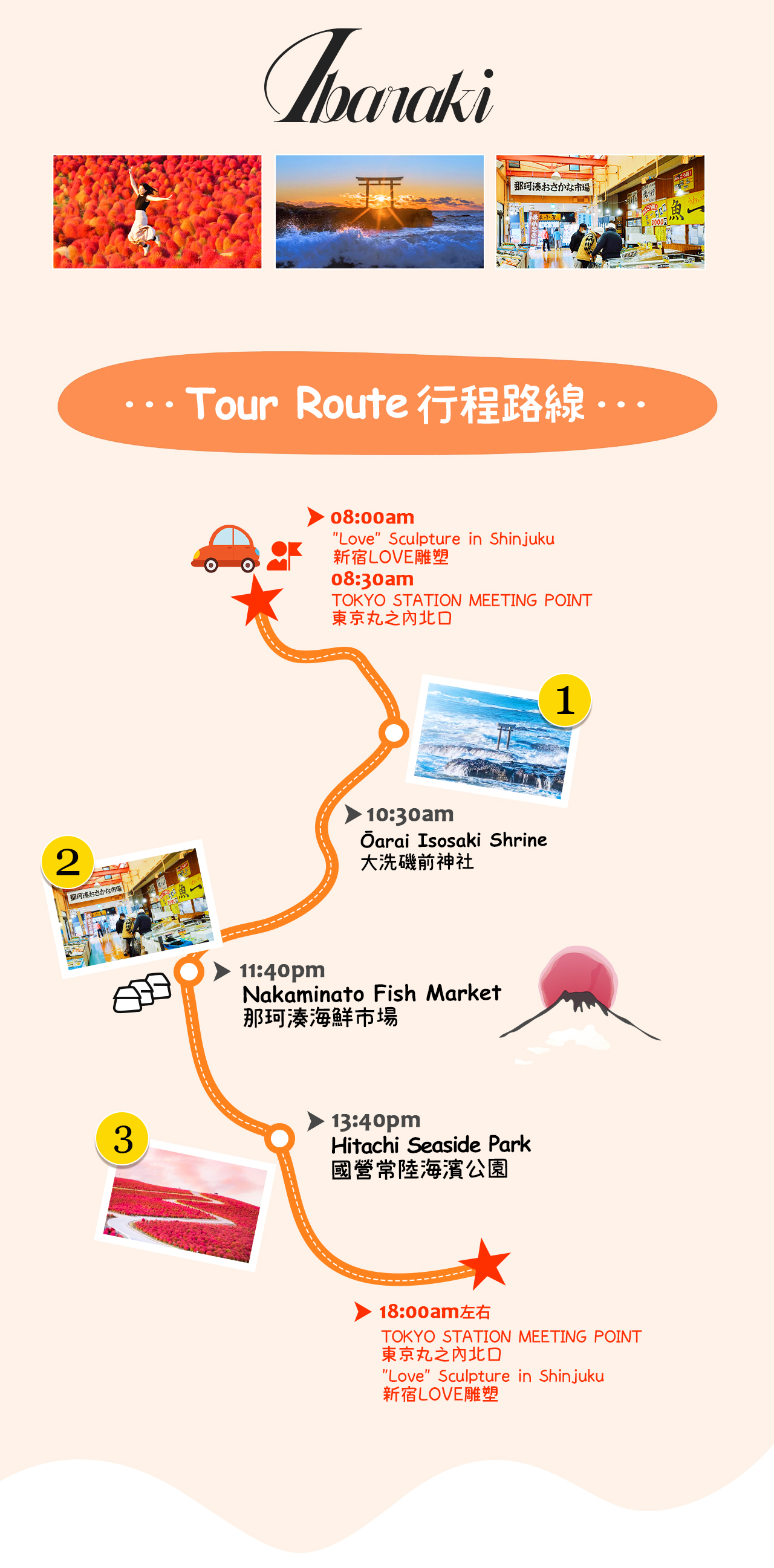 茨城赏花|大洗磯前神社&那珂凑海鮮市場&国营常陆海滨公园一日游 |东京/新宿出发