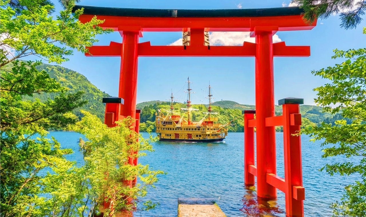 【富士山箱根水陆空一日游】箱根神社&芦之湖海上鸟居&箱根海贼船&箱根空中缆车(赠送缆车票)&大涌谷&山中湖白鸟滨&忍野八海|东京出发
