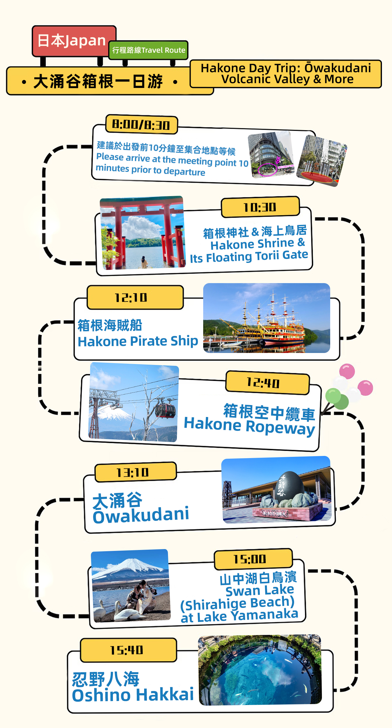 - ⛩️箱根神社:据说在交通安全、心想事成、恋爱成就、开运除厄上非常灵验,被人所信奉。