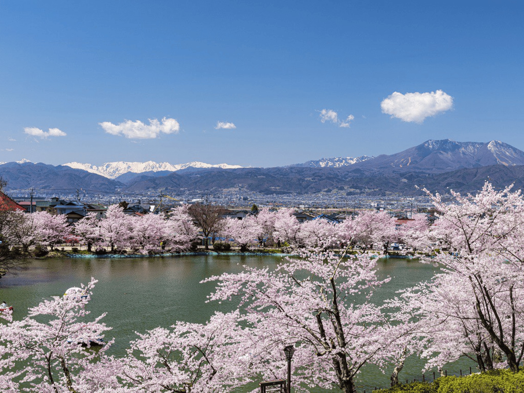 漫步于 400 年历史的巨大雪松大道,前往日本神秘的奥社。 佐仓:在卧龙公园或小布施等最佳赏花地点,欣赏佐仓与雪峰交织的美景。 选项 3:上高地阿尔卑斯山(4 月 15 日起)