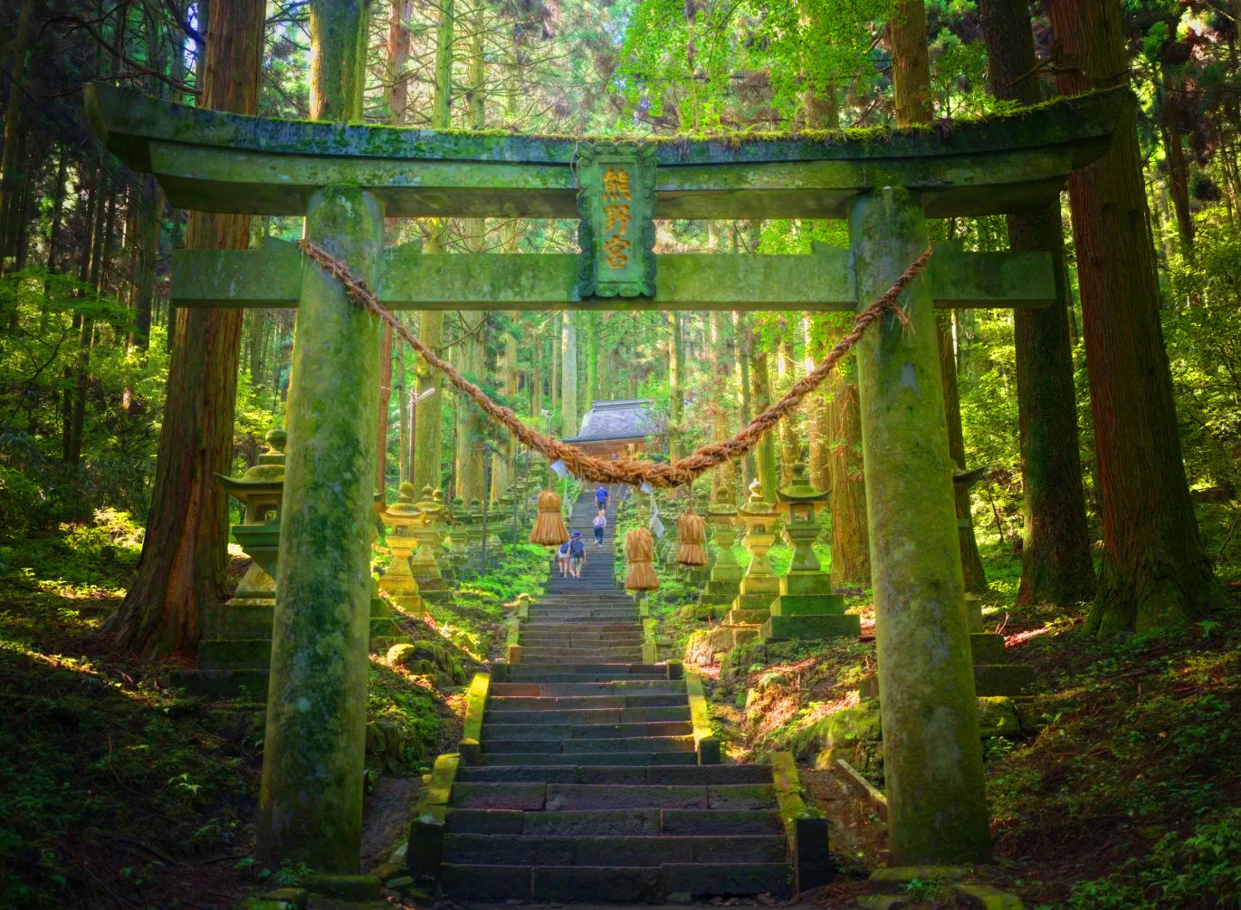 - * 早晨从博多站集合出发,首先造访被青苔与杉木包围的【上色见熊野座神社】,走过石灯笼参道,感受阿苏山脚下的静谧气息