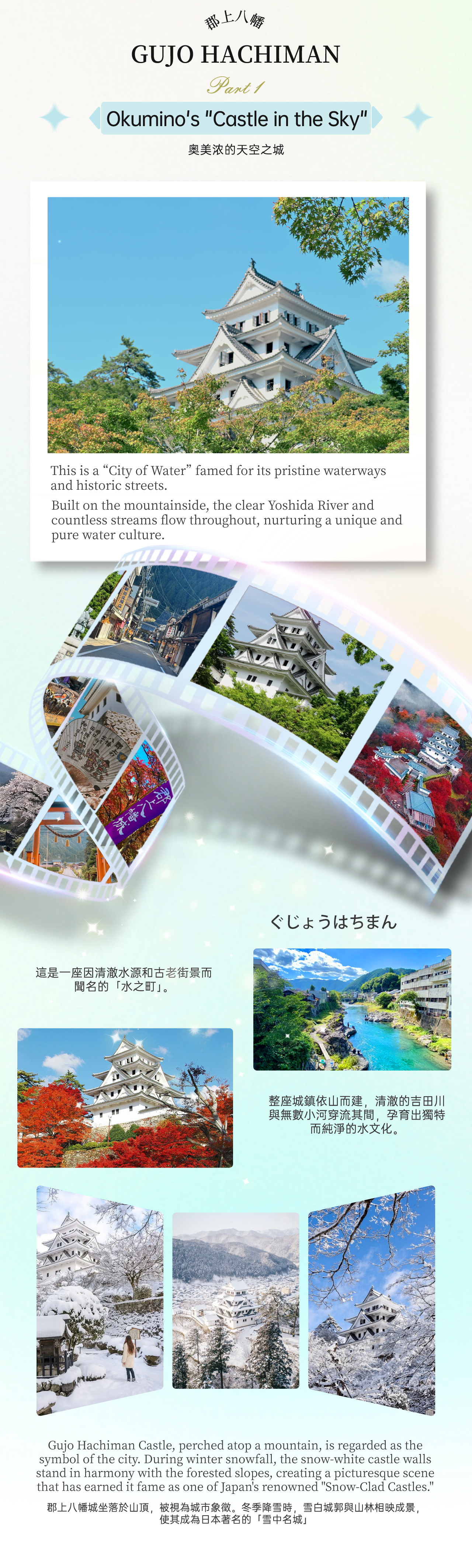 - * 漫步郡上八幡水之城镇,感受清澈水系与江户风情交织的静谧古城氛围