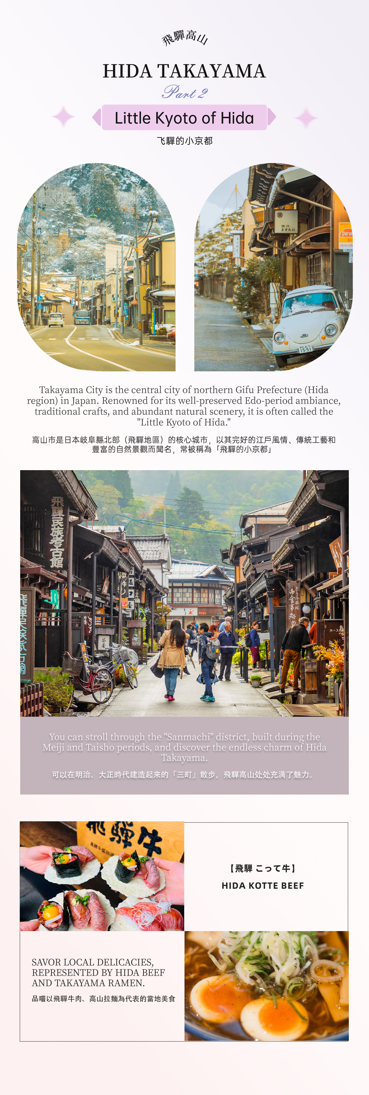 - * 深入飞驒高山三町古街,品尝飞驒牛美食,体验匠人文化与在地生活