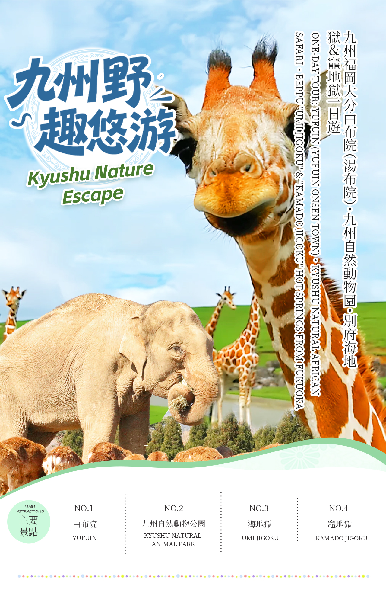 ## ⚠️冬季若遇极端天气,大分野生动物园将临时停业(无法提前获知关闭信息)。如当日无法前往,行程将改为大分海之卵水族馆。此外,当日景点游览顺序会根据路况调整,恕无法提前通。 从福冈出发,踏上一趟集自然风光、可爱动物与地热奇观于一体的九州大分一日游!