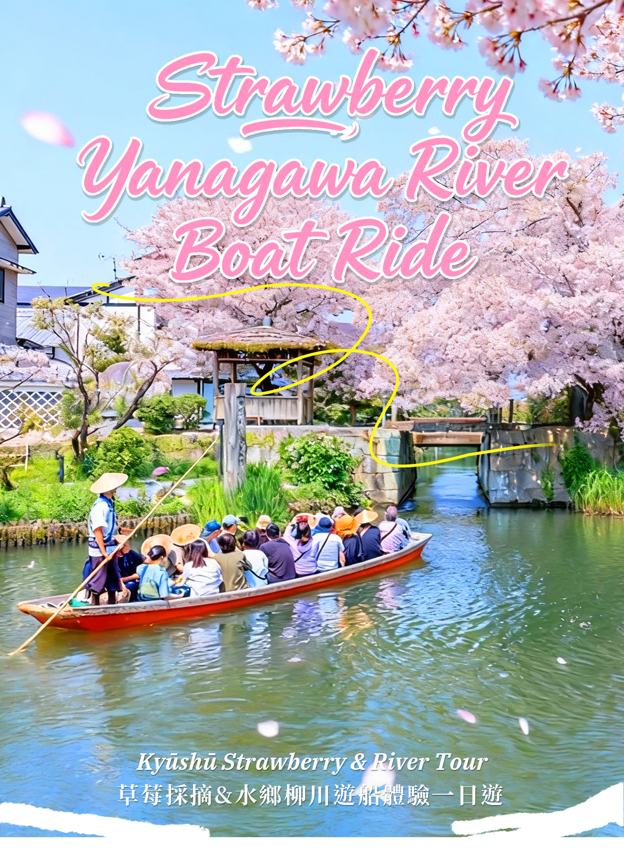 - ,* 柳川水乡 Donko 船游,河道纵横,樱花与柳树倒映水面,氛围浪漫宁静。