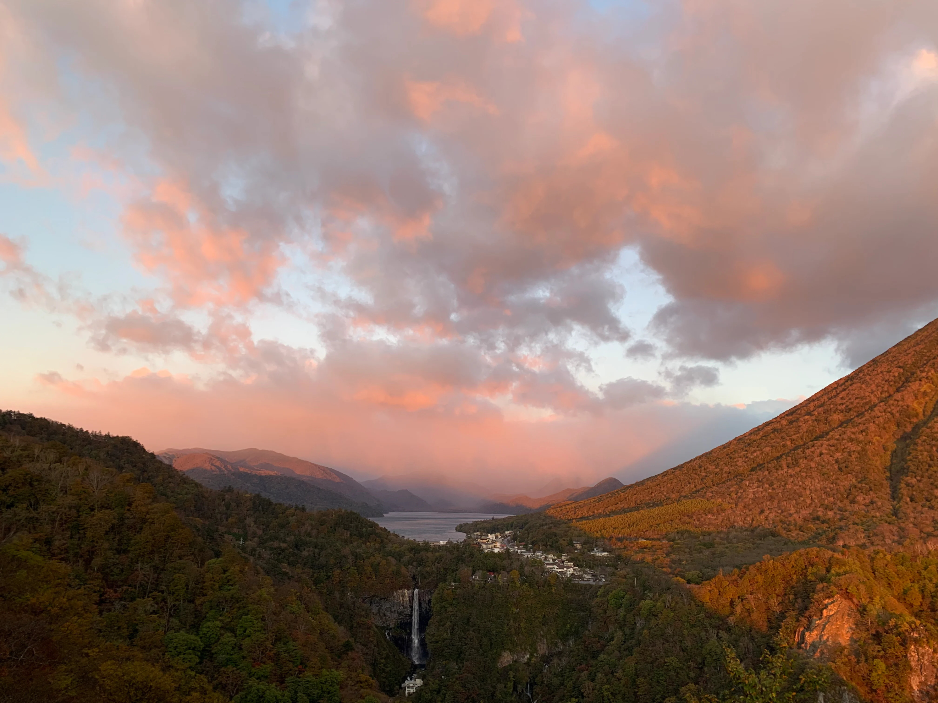 明智平展望台被誉为日光最佳观景点,可将中禅寺湖、华严瀑布、男体山等壮丽景色尽收眼底。向东眺望,还能欣赏到屏风岩的陡峭悬崖以及远方绵延的山脉。