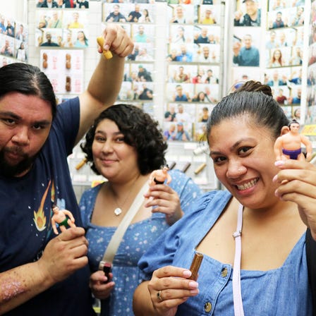 当三种不同颜色的印戳一个一个叠在一起时,就会出现典型的日本人物,如忍者、武士和穿着和服的女性。