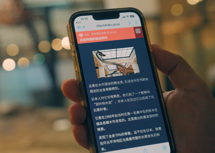 只要使用的智能手机连接馆内专用Wi-Fi,便可查看展品的详细解说。支持日语、英语、中文和韩语。只需扫描馆内张贴的二维码即可使用,无需下载应用或注册会员。