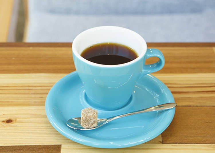 飯後咖啡,象徵Shima Blue的亮藍色咖啡杯。