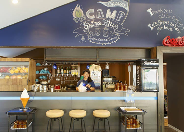 這個看起來很有文青氣息的建築物,其實是飯店大廳兼咖啡廳的「Shima Blue Cafe」,CHECK IN時間為15時~18時,共7間房間,分別為5間獨棟小屋與2間圓頂帳篷房,房間大小、裝潢與價錢都不太一樣。以1晚住宿+2餐的基本方案來說,1人26,000円~(消費稅・入湯稅另計,將依季節有所變動),另外也有「住宿+晚餐」「住宿+早餐」「住宿不附餐」多種方案供選擇。