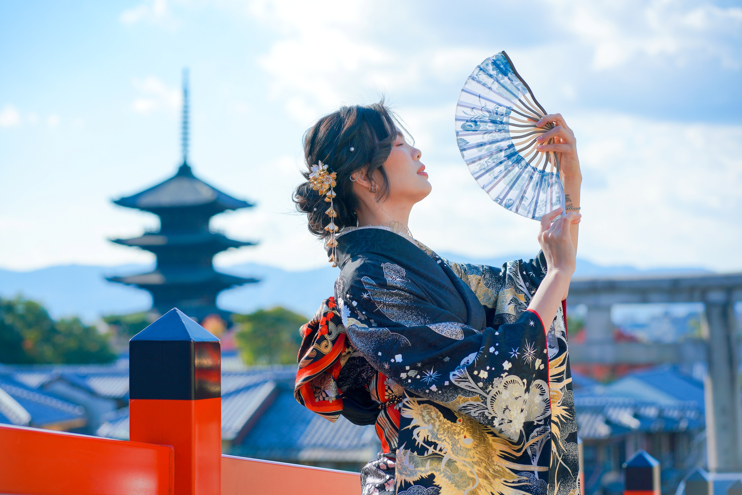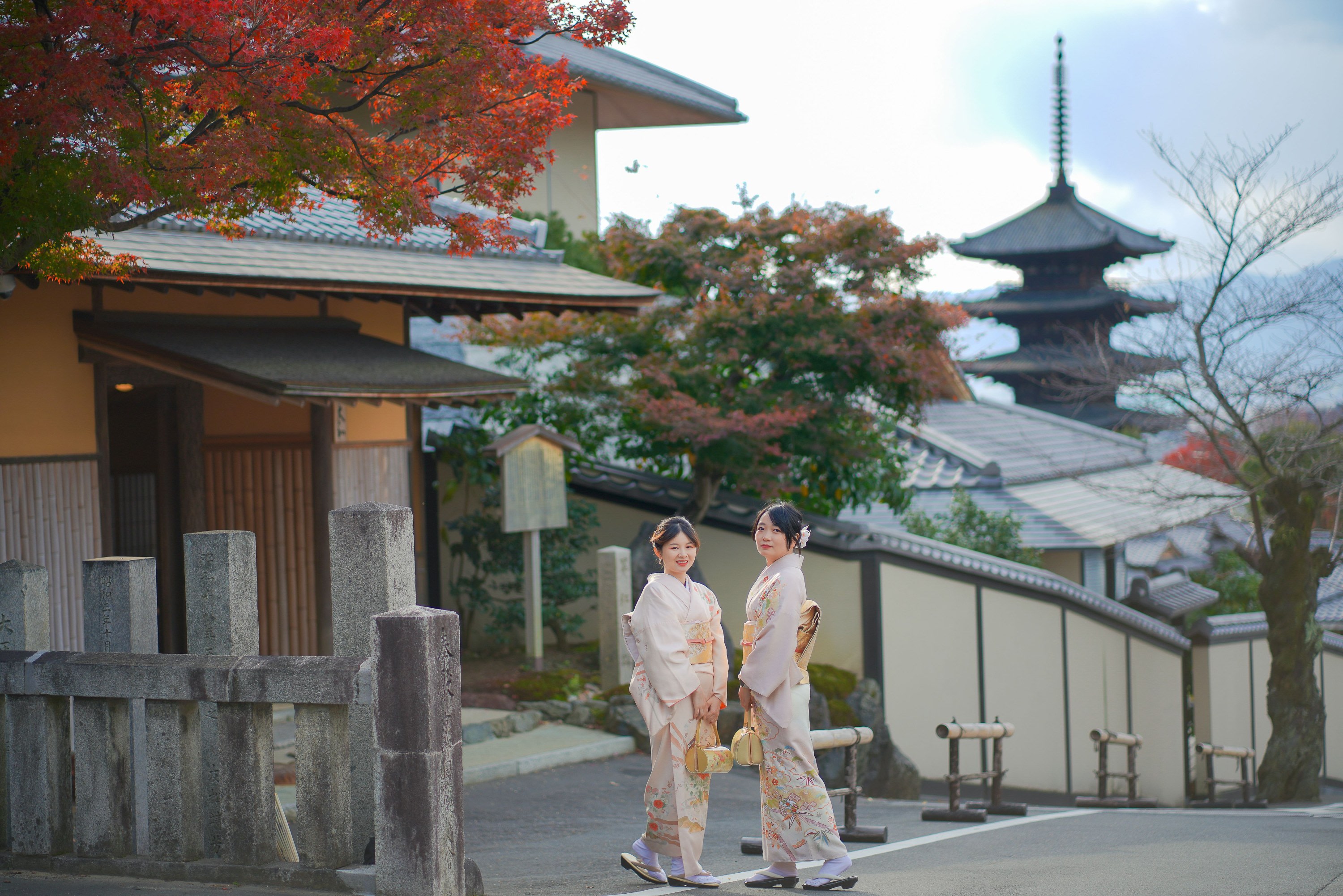 穿上和服在專業攝影師的帶領下穿梭於祇園、二年坂古街道,在經典地標下留下由攝影師拍攝的專業寫真,包含和服體驗於專業拍攝。最終每人會獲得至少30張原片和3張精修照片。