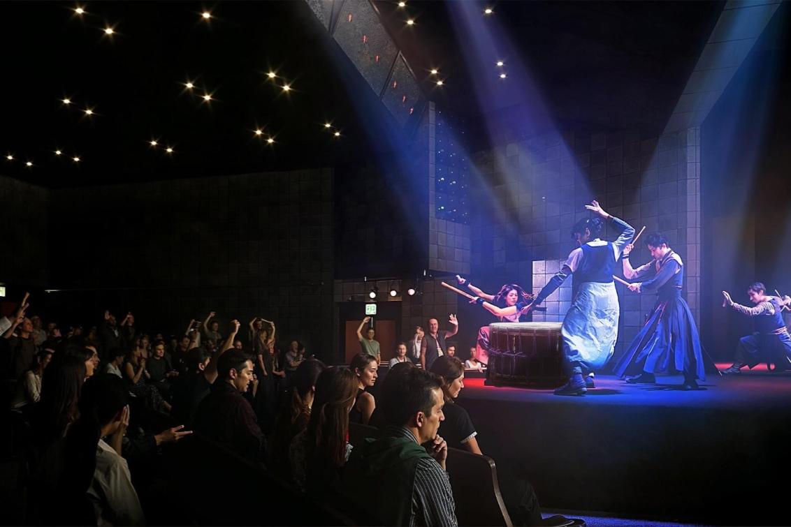 京都,這座深受各世代喜愛、擁有豐富多元面貌的城市。正因為我們致力於為京都的夜晚提供新的象徵,所以我們不拘泥於單一表演,而是堅持提供可靈活選擇的節目。我們準備了不同時段、概念各異的表演。您可以根據不同情境,選擇最適合的體驗方式。 在近距離劇場中,您能感受到連呼吸聲都清晰可聞的沉浸式體驗,完全被聲音包圍。 酒吧裡擺滿了精選飲品和輕食,您可以在屋頂上感受夜風,暢談心事。我們將為您帶來一個難以忘懷的京都之夜。 ●第一部 19:00場次 「響-HIBIKI-」 <觀眾與表演者融為一體,充滿活力的現場表演> 這是一場讓所有觀看者都沉浸其中的娛樂盛宴。 劃破寂靜的一擊,包圍全身的震動,以及直接的快感。 不知不覺中,無論大人小孩都展露笑容。 這是一場讓人彷彿躍入音浪般,一體感令人上癮的表演。 ●第二部 21:00場次 「夢-YUME-」 <讓您沉浸在夢幻世界觀中的夜間表演舞台> 在古都的寂靜中,響起強勁的音色。靜與動,光與影。 對比所產生的戲劇性,疊加上深沉的節奏。 和樂器與影像將引領您進入一個夢幻的世界。 這是一個非日常餘韻繚繞不絕,幽玄的舞台,絕對不容錯過。