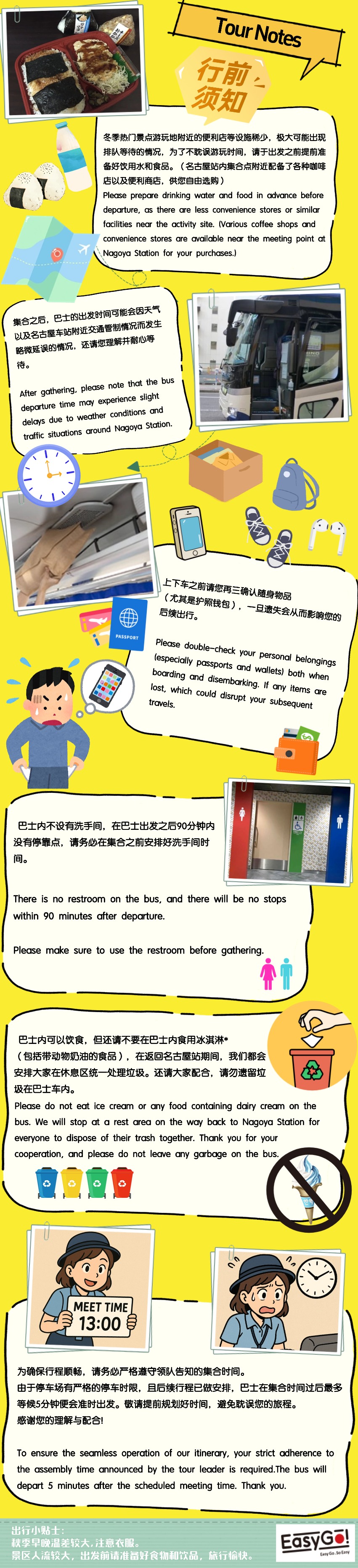 由名古屋站出發,展開迷人的長島Outlet及名花之里冬季彩燈巴士之旅。在三井Outlet Park Jazz Dream長島盡情享受四小時的購物樂趣,各式各樣的品牌和誘人的優惠等著您。在充滿活力的購物氛圍中,探索時尚、飾品等商品。接著,沉浸在名花之里迷人的冬季彩燈中三個小時。穿越燈光隧道,驚嘆於精美的燈光雕塑,並陶醉於神奇的氛圍中。這些彩燈以其迷人的美麗而聞名,創造難忘的回憶。整個旅程以便利性為重,交通接駁都已安排妥當。