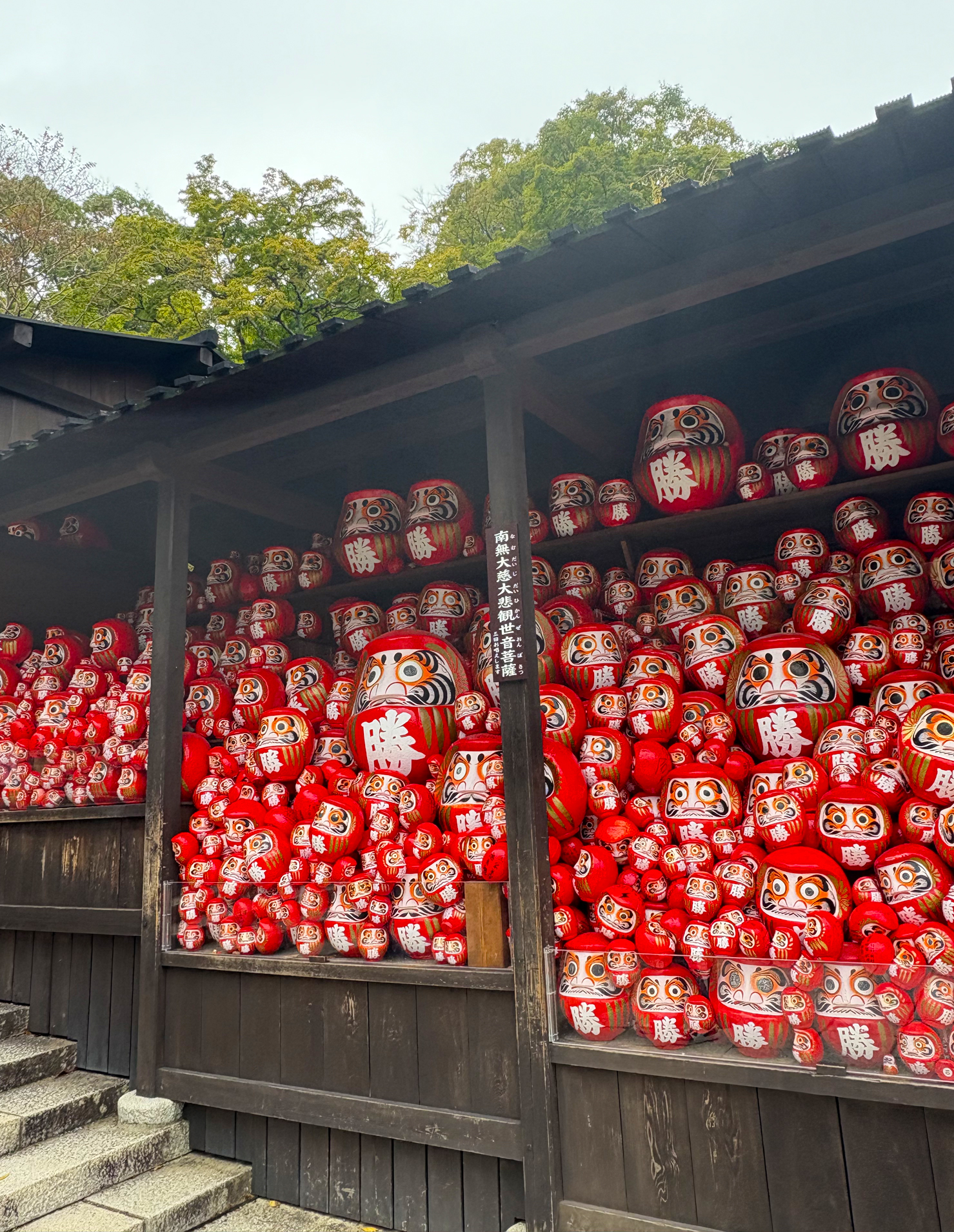 【勝尾寺】 一座位於大阪府箕面市山間的千年古寺,以遍佈全寺的可愛達摩人偶和四季皆美的自然風光而聞名。這裡不僅是祈求“勝運”的靈驗之地,也是拍照打卡的絕佳去處。 【京都嵐山】 京都西郊的一片絕美區域,以四季分明的自然風光和深厚的歷史底蘊聞名。這裡不僅是《臥虎藏龍》的取景地,更是體驗京都“慢生活”的絕佳去處。 【嵯峨野小火車】 客人可自行選擇坐小火車,從嵯峨站出發,沿途穿越楓林隧道,復古的車廂和窗外的景色堪稱一絕。 【竹林小徑】 小火車終點站龜岡站下車後,步行幾分鐘就能到達。陽光透過高聳的竹林酒下斑駁光影,彷彿走進了宮崎駿的動畫世界。 【伏見稻荷大社】 京都最負盛名的景點之一,以其綿延不絕的硃紅色“千本鳥居”和可愛的狐狸元素而聞名。這裡不僅是日本3萬多座稻荷神社的總本宮,也是祈求學業、事業、健康和家庭平安的靈驗之地。 【千本鳥居】 這是伏見稻荷大社最核心的景觀。成千上萬座硃紅色的鳥居從山腳一直延伸到山頂,形成一條長達4公里的紅色隧道。