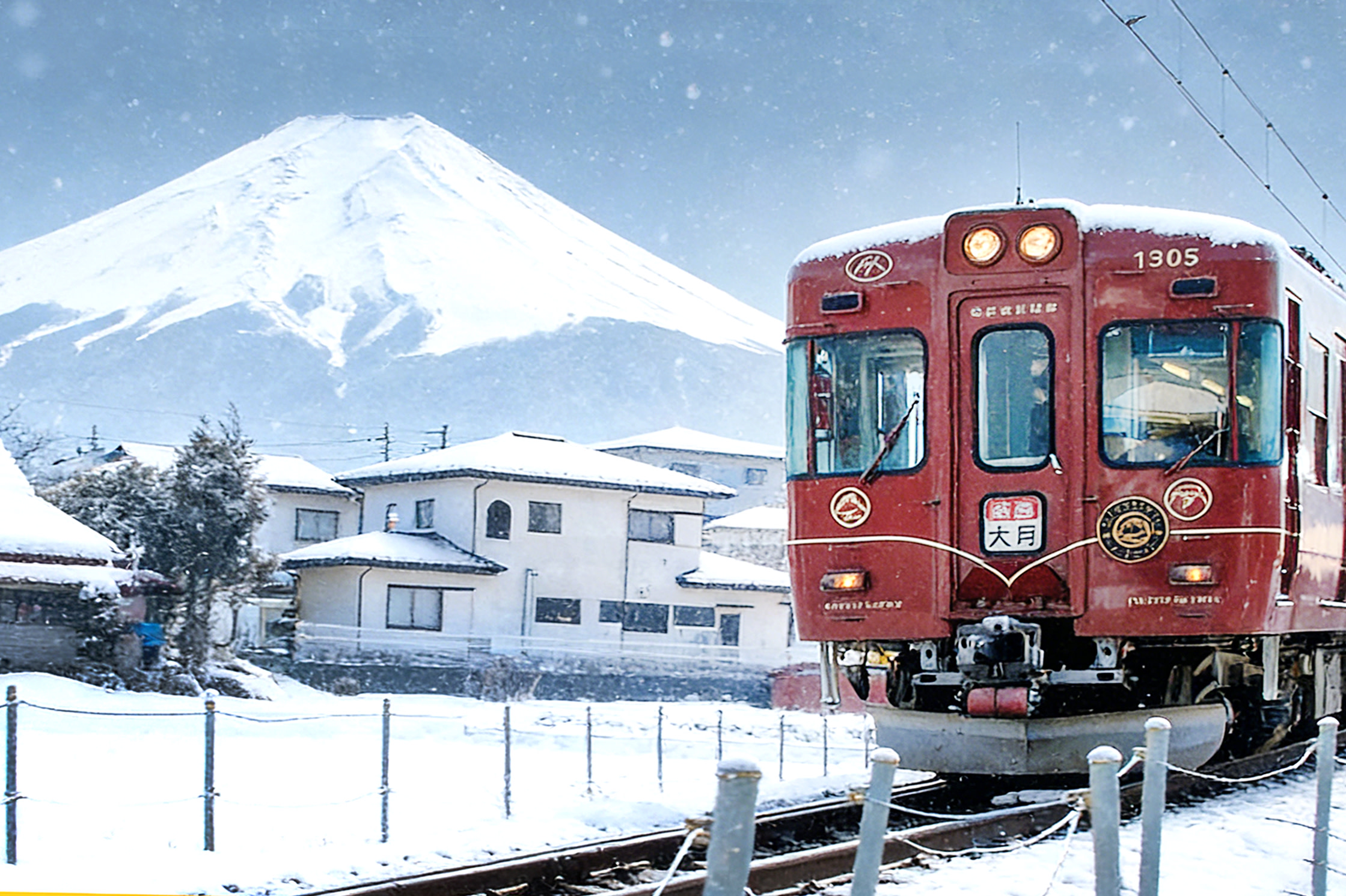 富士山最美列車體驗|淺間公園+日川時計店+富士急列車+羅森便利店+河口湖遊船/纜車+山中湖喂天鵝【贈送小火車票】