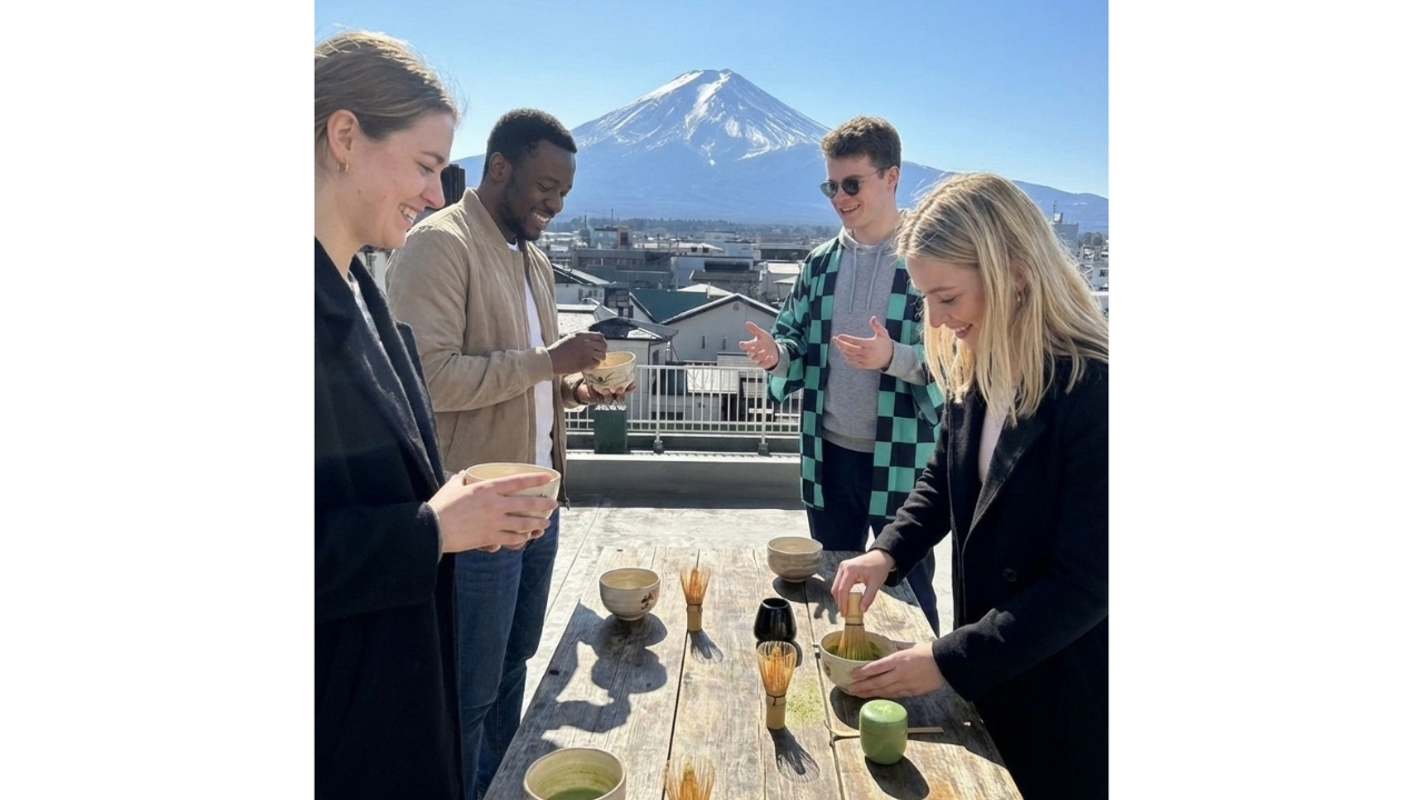 在屋頂上享受輕鬆的抹茶製作體驗,同時飽覽富士山的壯麗景色。友善的老師將引導您一步步完成傳統日式抹茶的製作。您可以悠閒地攪拌自己的抹茶,沉浸在寧靜的氛圍與如畫的風景中。這場簡短而愉快的體驗課程非常適合初學者,並提供充足的機會,讓您捕捉以富士山為背景的美麗照片。