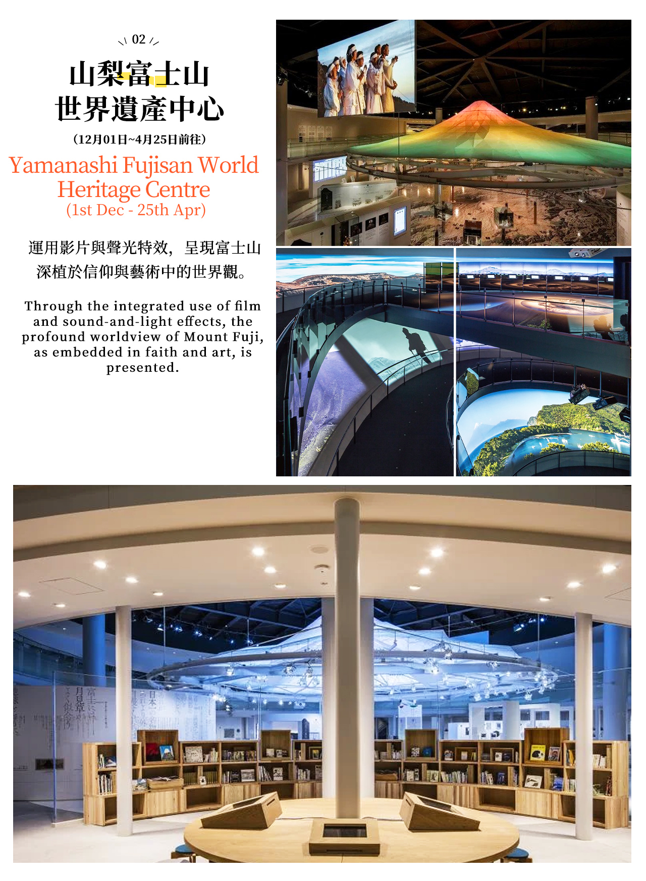 - * 富士山五合目:近距離欣賞雄偉富士山景,打卡富士山遺產中心。