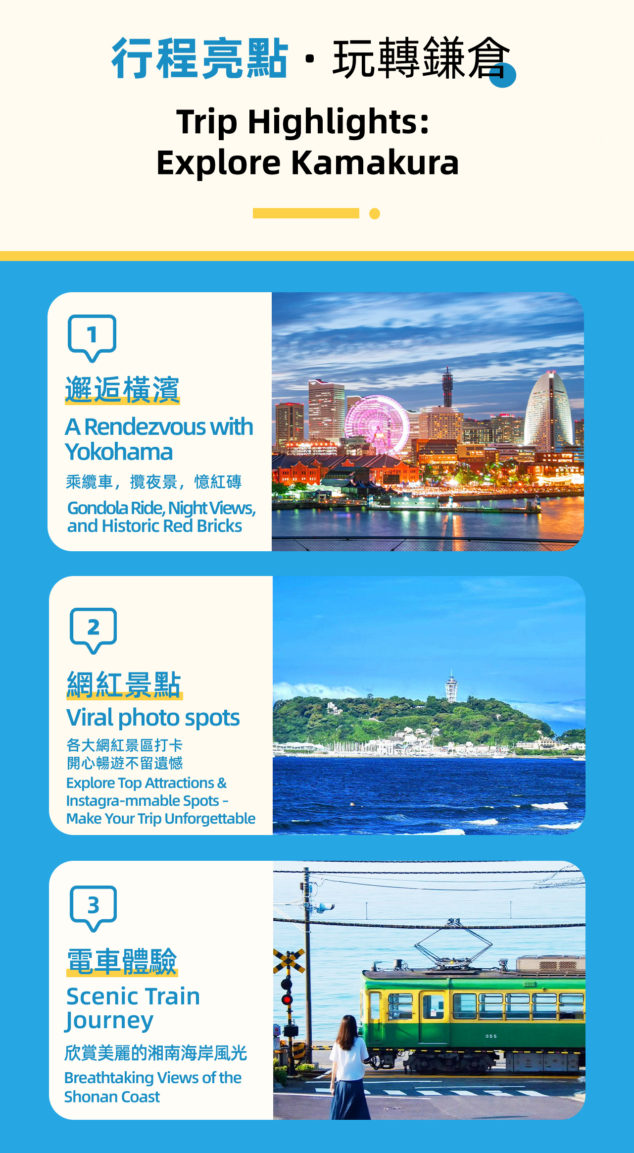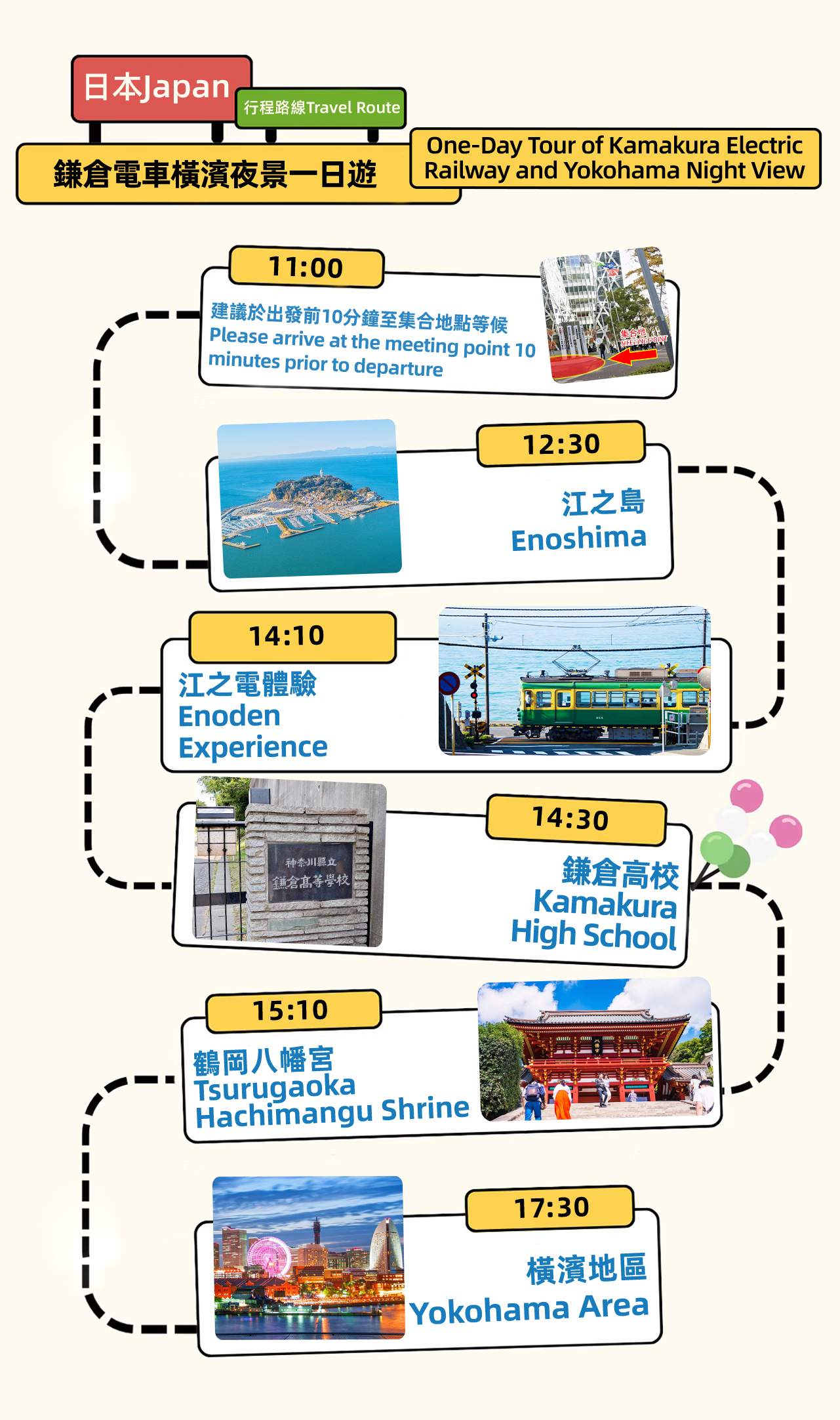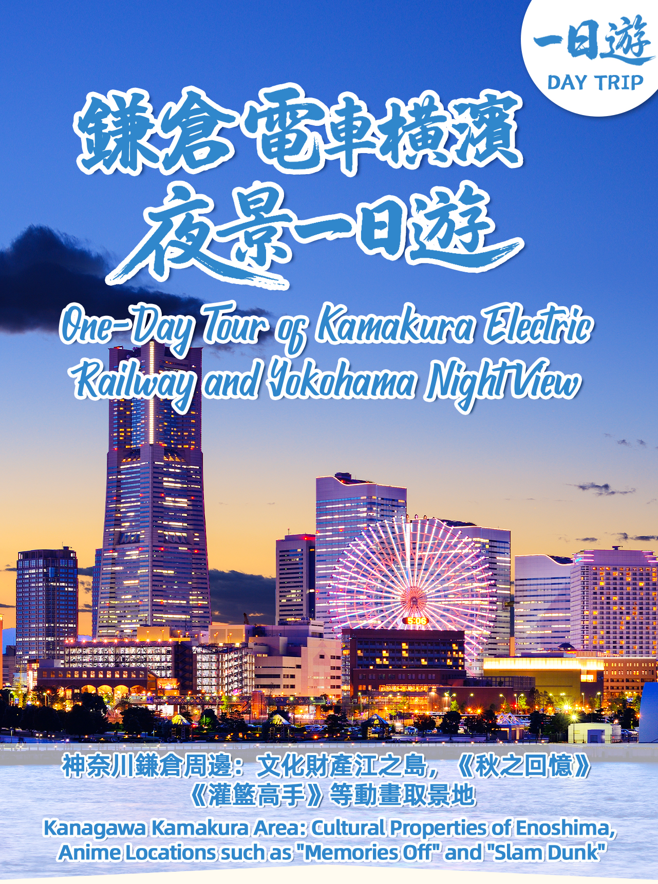 [神奈川] 【鎌倉&橫濱|贈送電車體驗】江之島&鎌倉高校&鶴岡八幡宮&橫濱夜景一日遊(東京出發)